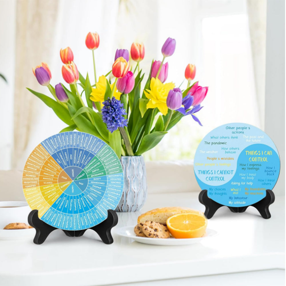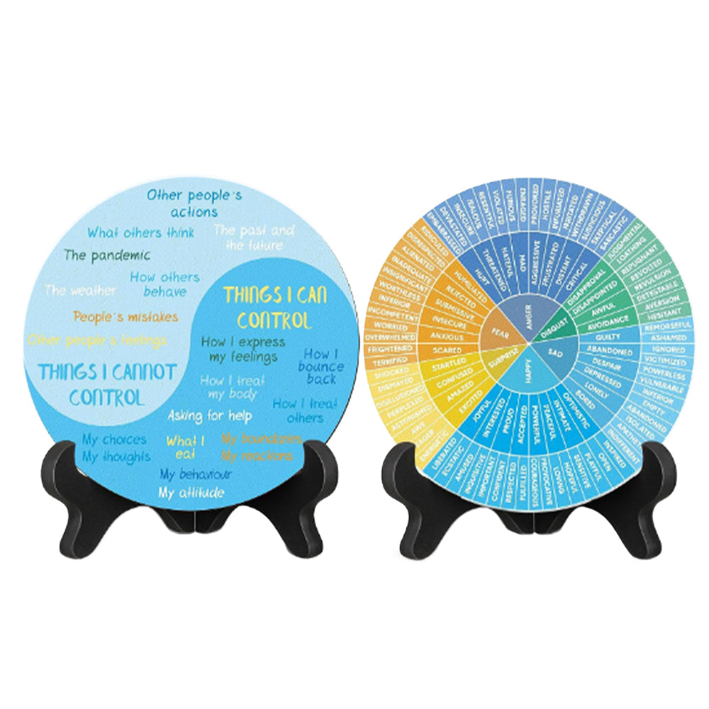 Double-Sided Feelings Wheel Mental Health Emotions Chart with Stand Psychology Decor for Home School Office Style 4