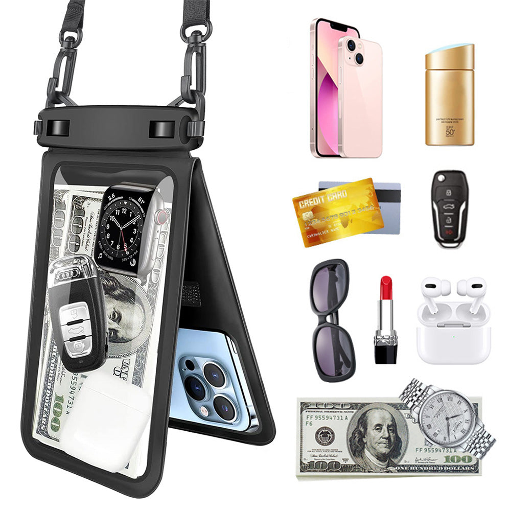 Double Space Water Resistant Phone Pouch Underwater Phone Dry Bags for Beach Pool Black