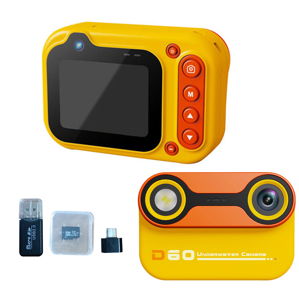 Dual-Lens Kids Underwater 10X Zoom Digital Camera Waterproof Action Camera with 32GB TF Card Yellow
