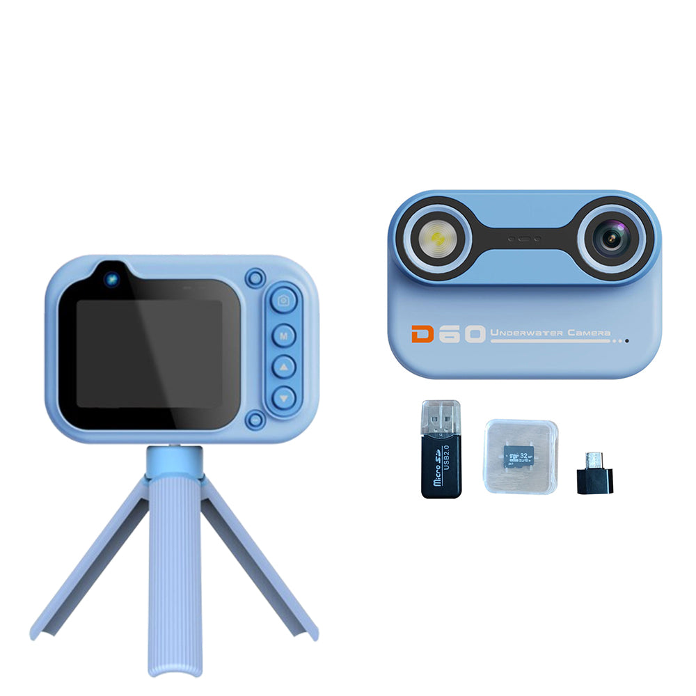 Dual-Lens Kids Underwater 10X Zoom Digital Camera Waterproof Action Camera with 32GB TF Card Blue