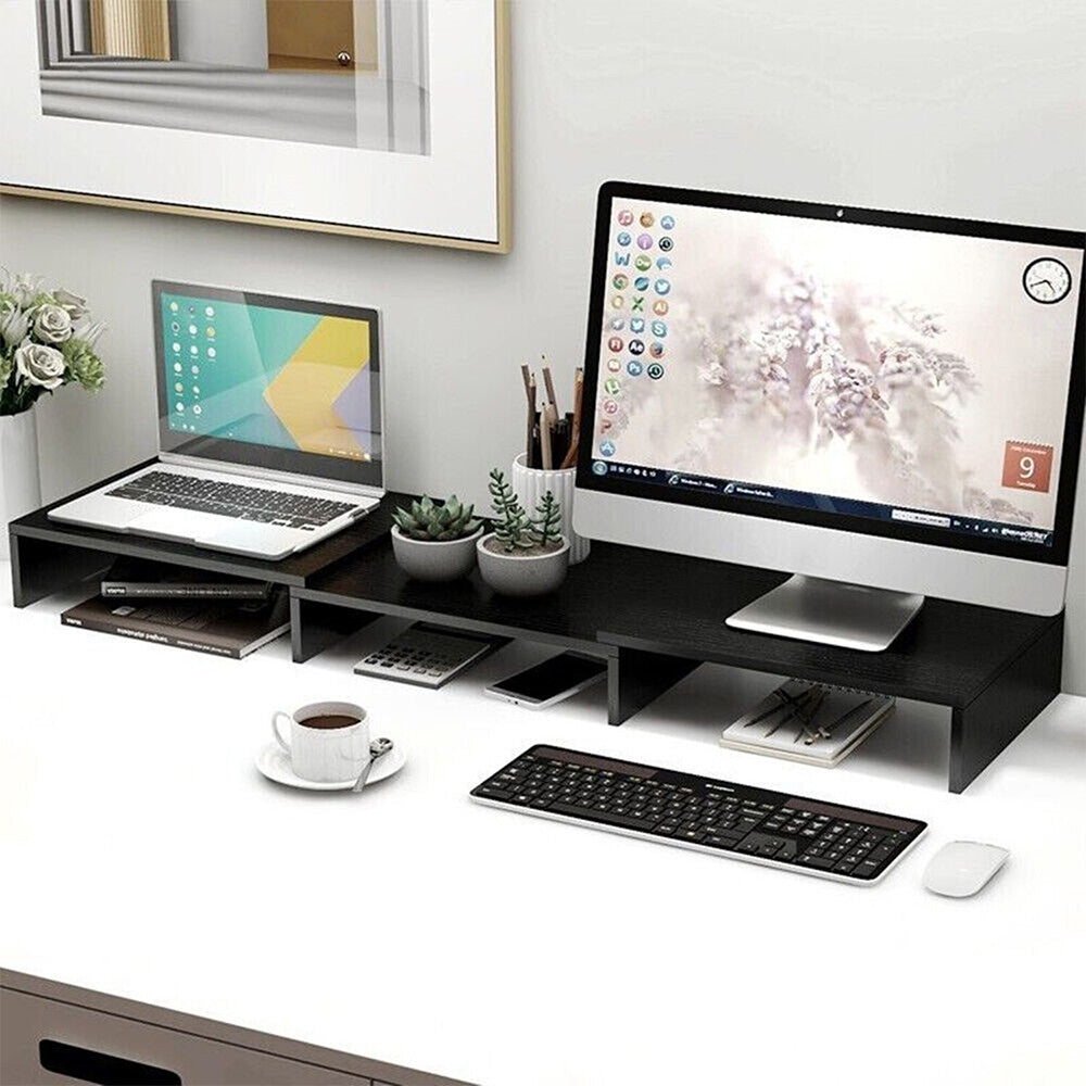 Dual Monitor Stand Riser Adjustable Desk Stand for iMac Laptop & Books Black
