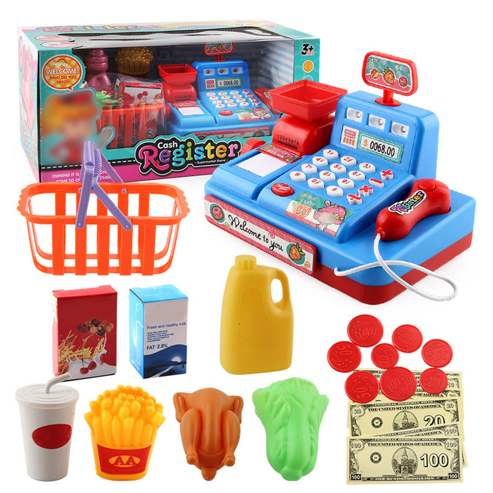 Educational Toy Cash Register for Kids with Calculator and Scanner Blue