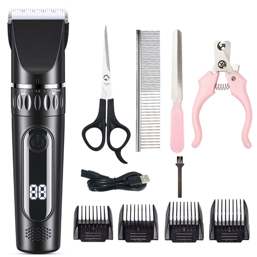 This electric grooming kit includes everything you need for complete pet care, with a versatile hair clipper and essential tools for nail grooming.