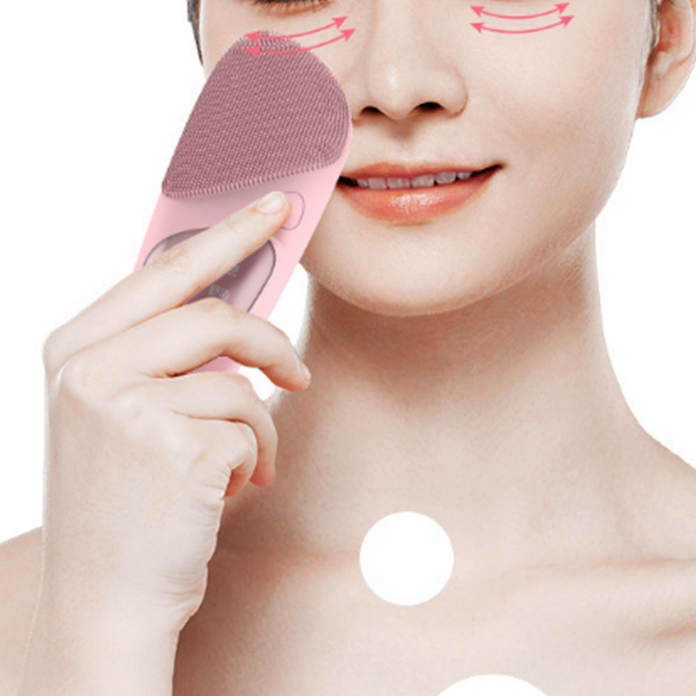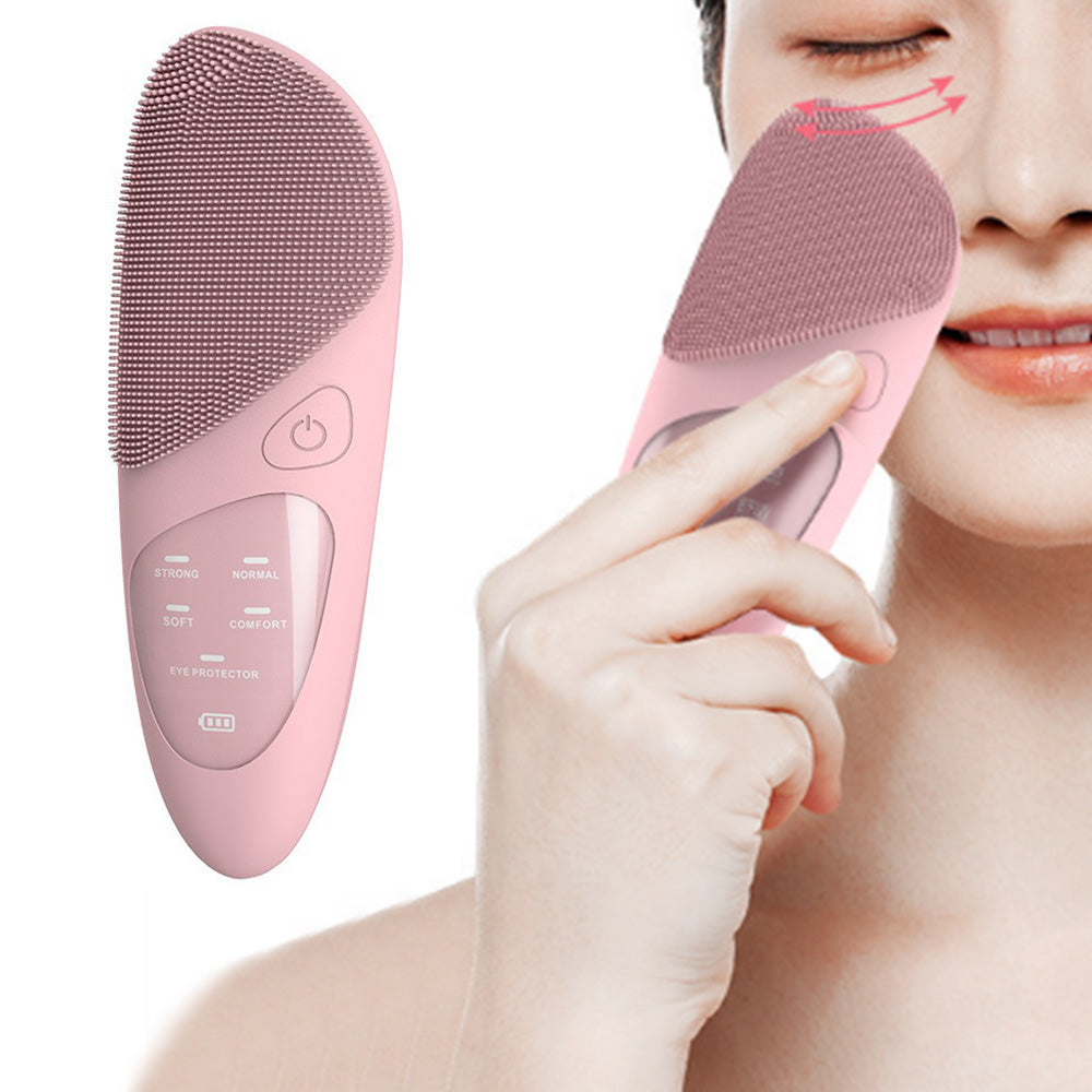 Electric Facial Cleansing Brush Silicone Face Scrubber for Cleaning Exfoliating Massaging Pink