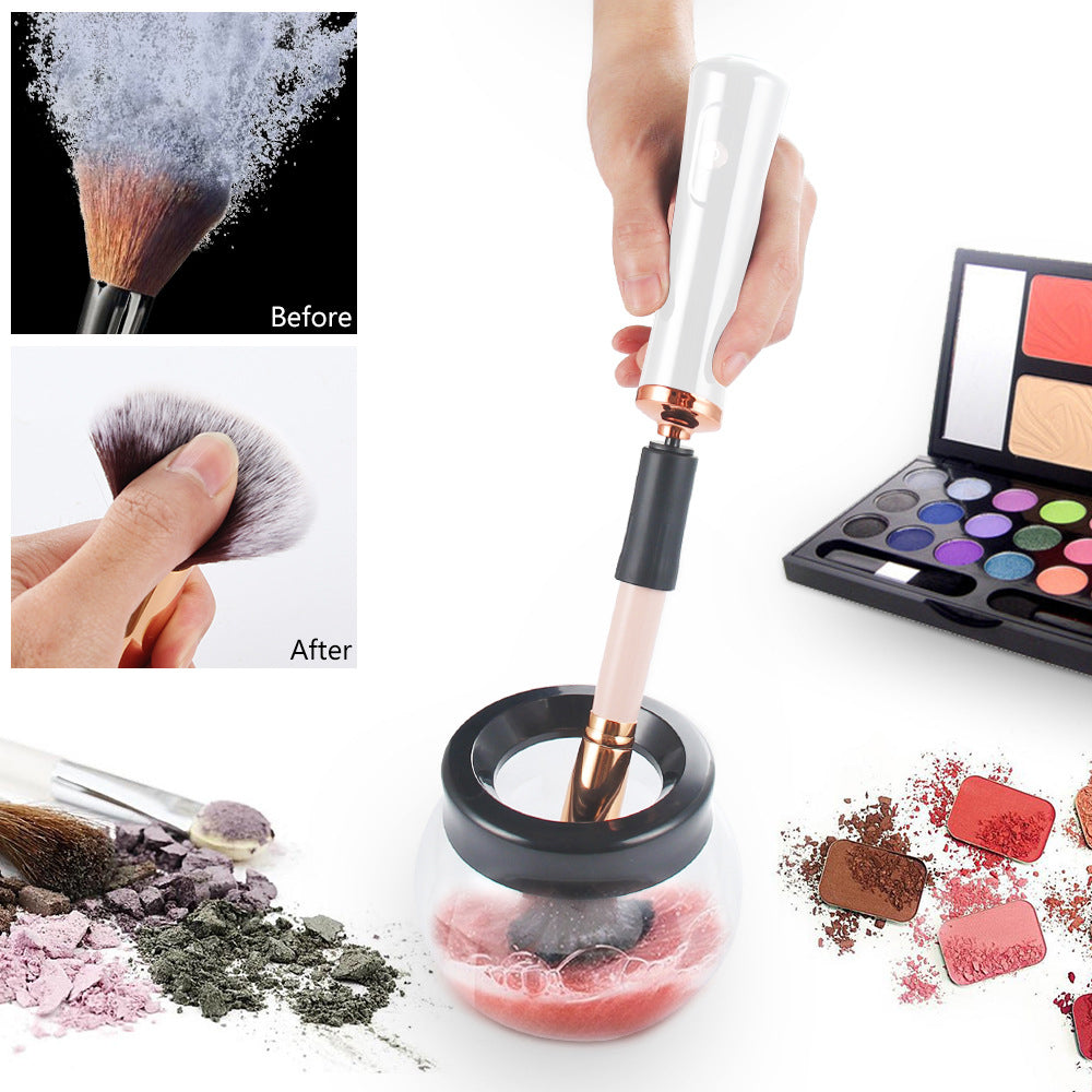 Electric Makeup Brush Cleaner and Dryer Machine Cosmetic Brush Spinner Cleaner for Most Size Brushes White