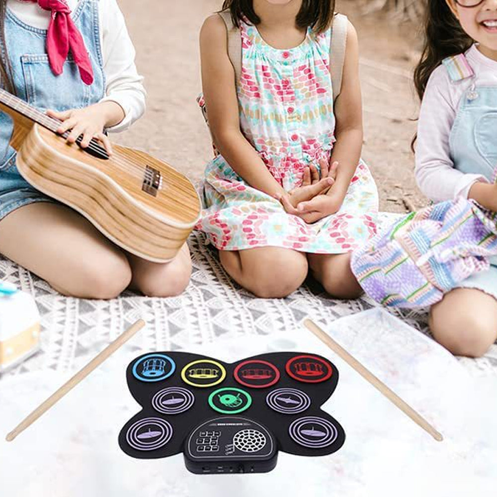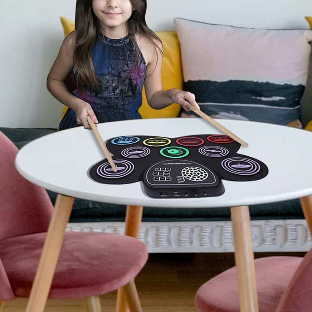 This portable electronic drum features an extra-thick, three-dimensional silicone head, perfect for picnics, traveling, and creating magical musical moments outdoors.