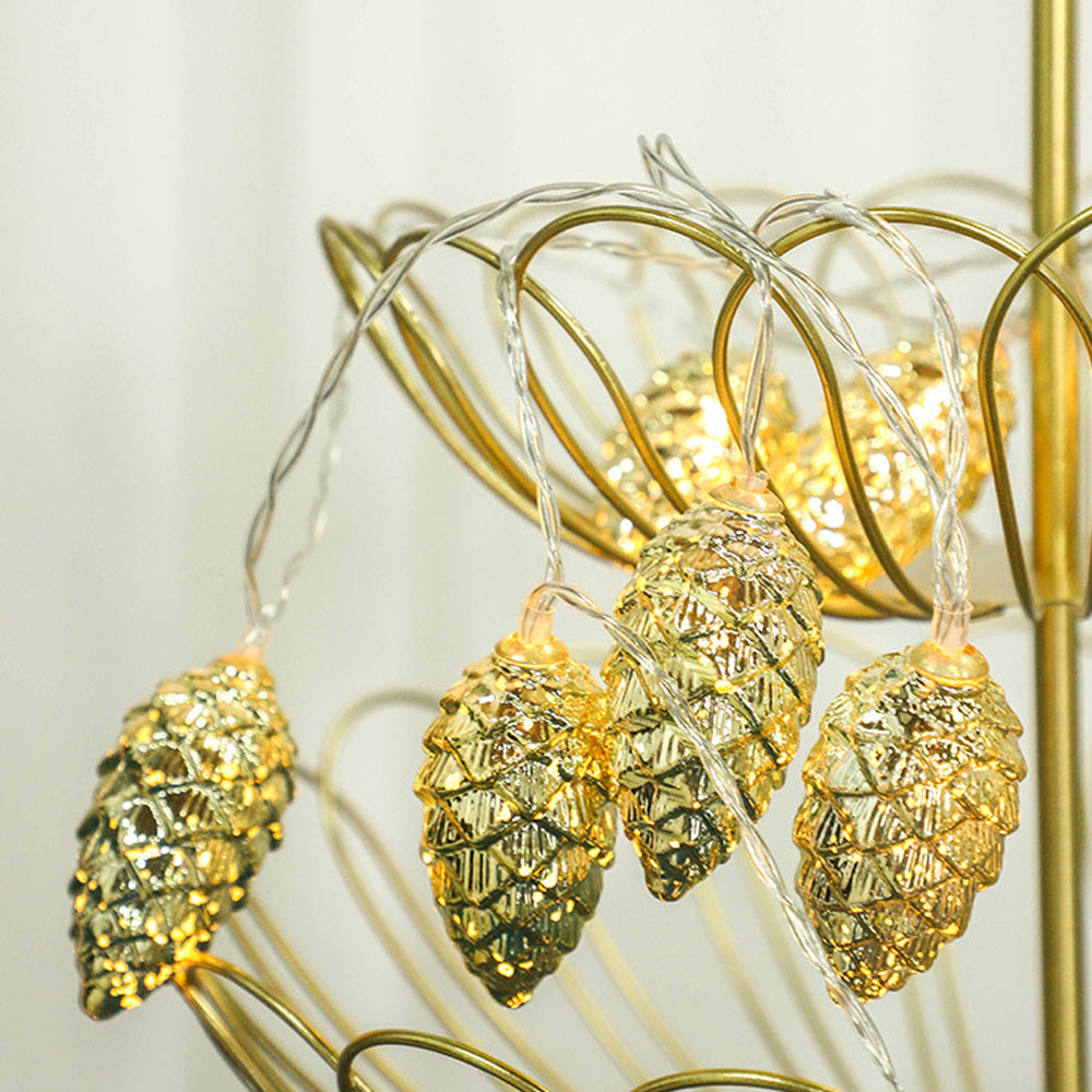 Gold Electroplated Christmas Pine Cone String Light Warm White Christmas Tree Decorative Lamp