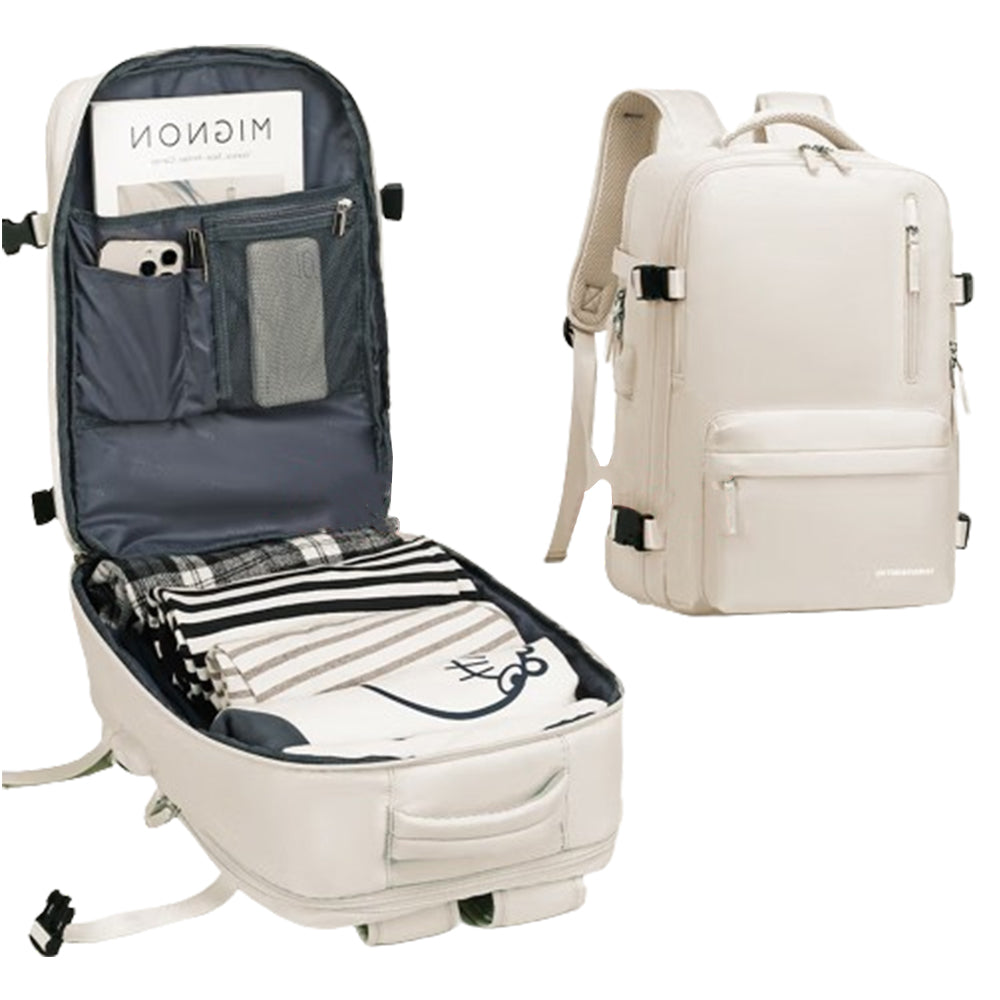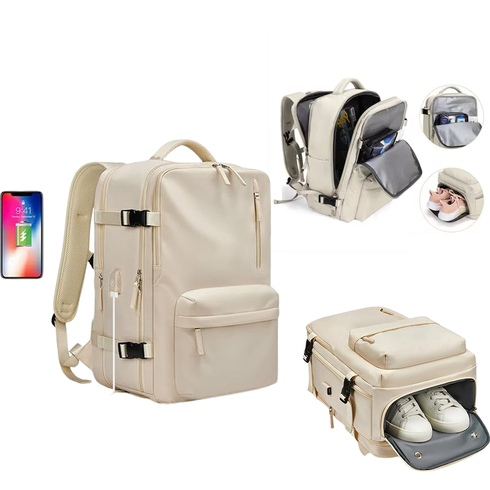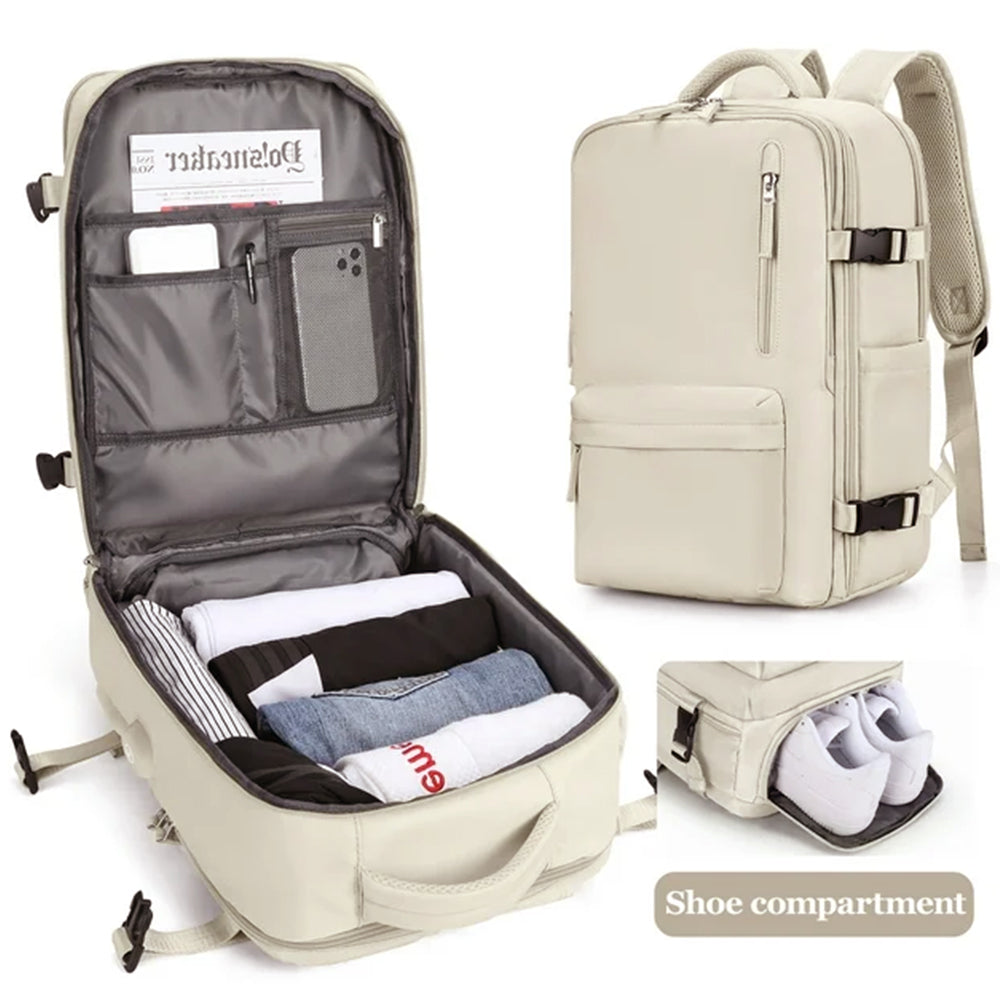 Expandable Travel Backpack Large Water-Resistant Carry on Backpack with Shoe Compartment Beige