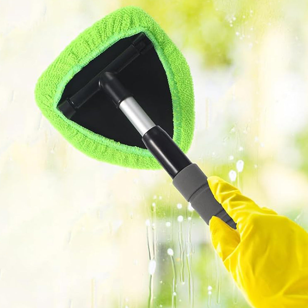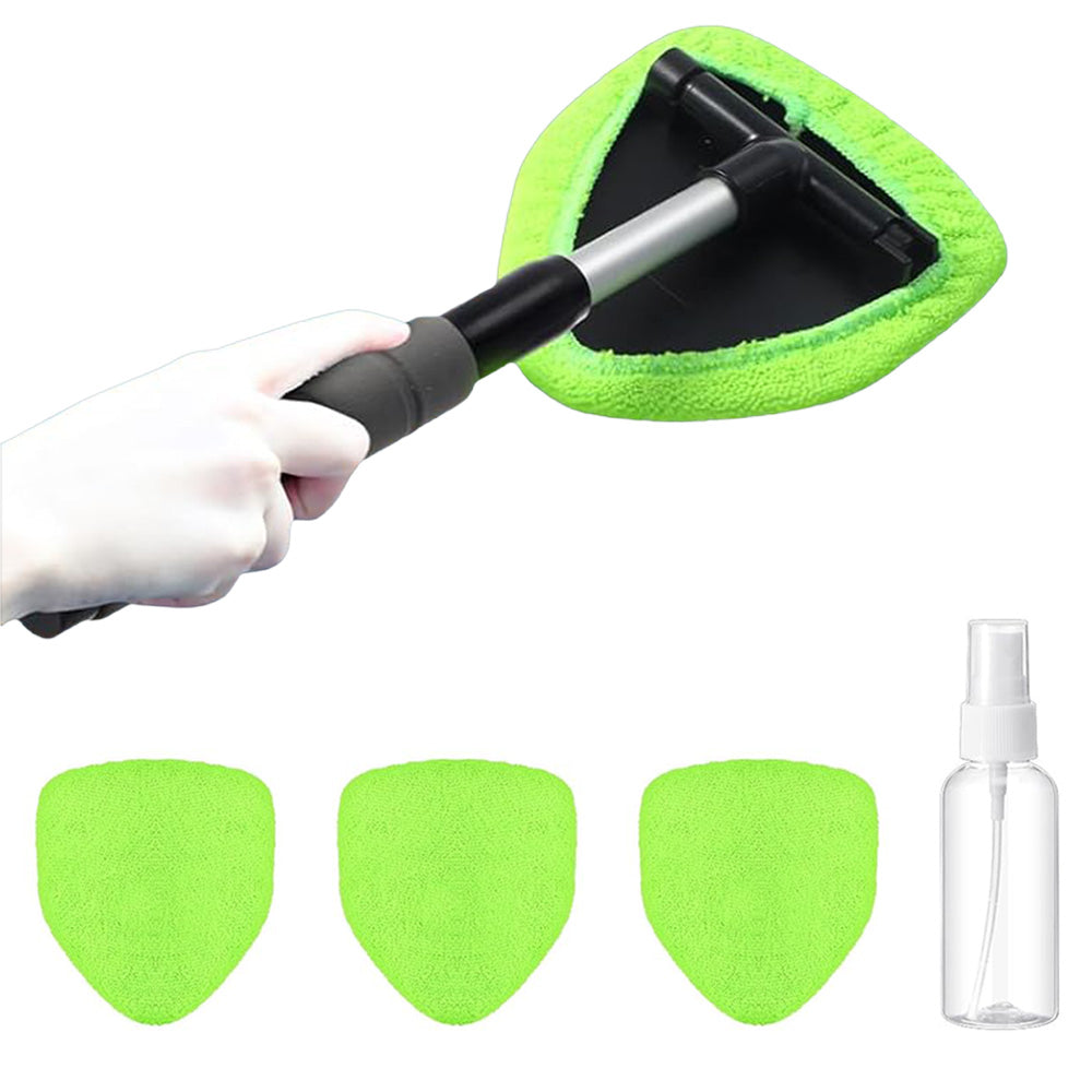 Extendable Windshield Cleaning Tool Set Car Window Microfiber Cleaner with 4 Replacement Microfiber Pads Gree