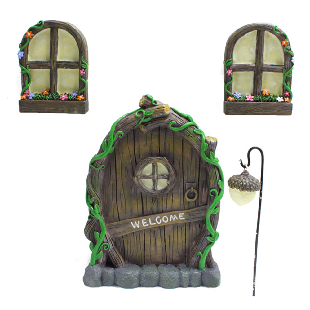 Fairy Door and Windows for Yard Garden Tree Art Sculpture Decoration