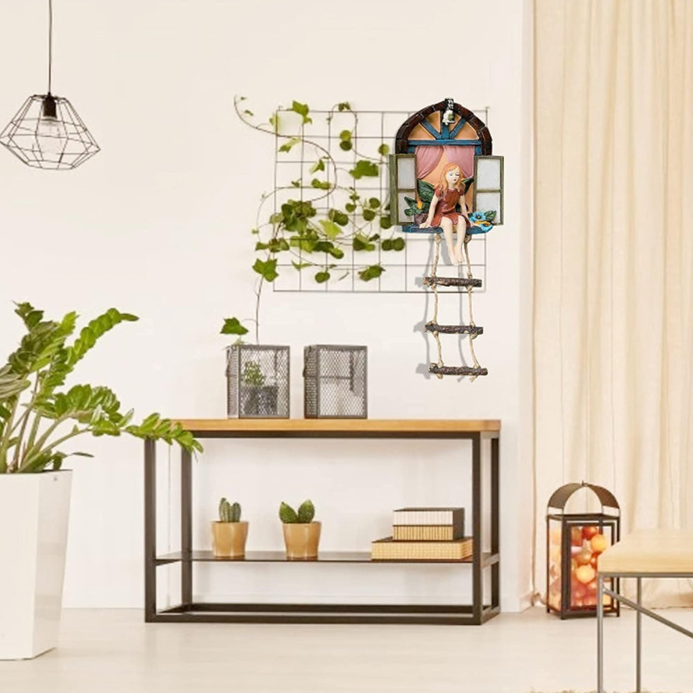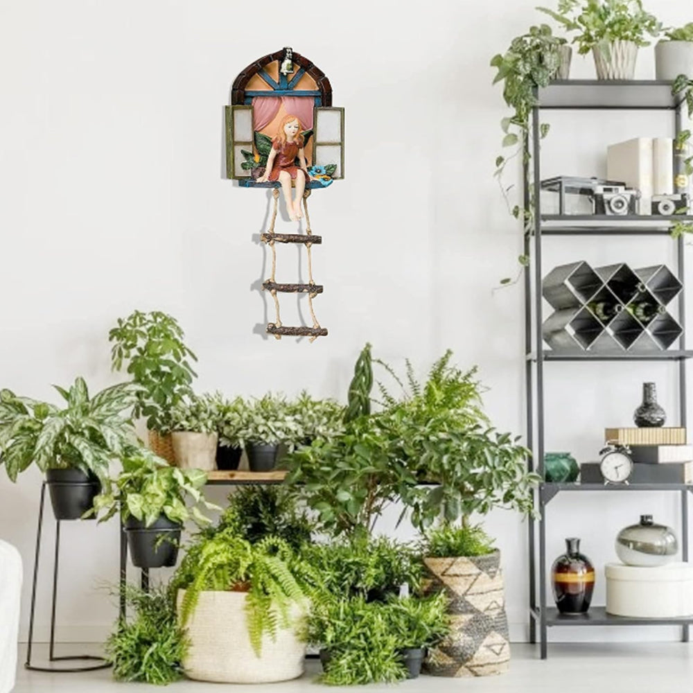 Fairy House with Ladder Statue Outdoor Garden Miniature Fairy Tree Hanging Decor
