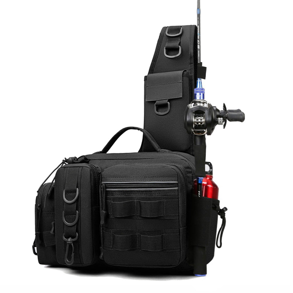 Fishing Tackle Storage Bag Fish Lures Bag Single Shoulder Crossbody Tactical Waist Pack Black