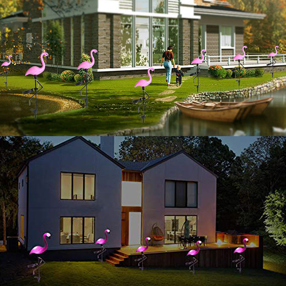 - Flamingo-shaped?--?With?elegant?appearance,?the?flamingo?solar?ground?lights?can?catching?more?people's?eyes.?They?not?only?lighten?your?path,?but?also?decorate?the?garden,?yard,?walkway,?etc.