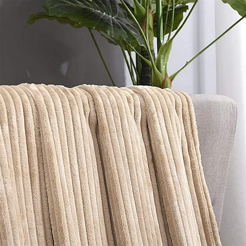 Winter Warm Chunky Fleece Ribbed Throw Luxurious Bedding Blanket for Sofa Couch Bed Khaki