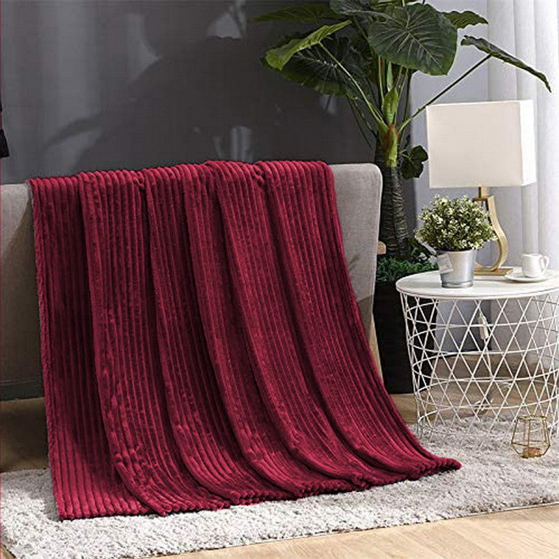 Winter Warm Chunky Fleece Ribbed Throw Luxurious Bedding Blanket for Sofa Couch Bed Wine Red