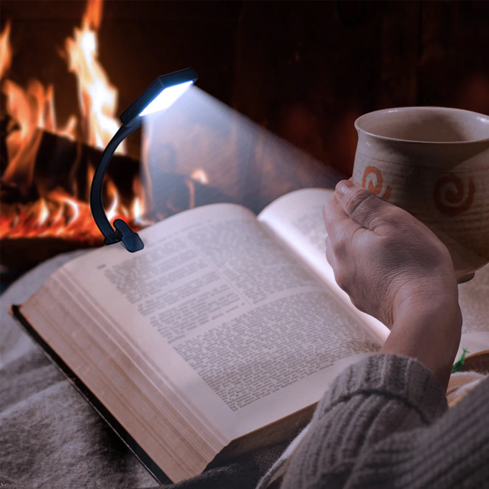 Flexible LED Book Reading Light Clip On Bed Desk Table Lamp USB Rechargeable Black