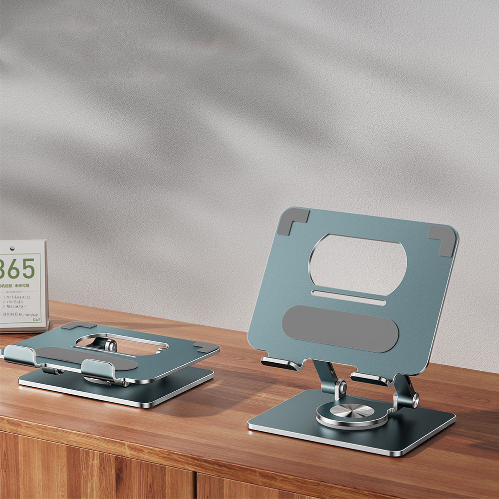 Foldable Aluminum Tablet and Phone Stand 360 Degree Rotatable Holder Blue Grey