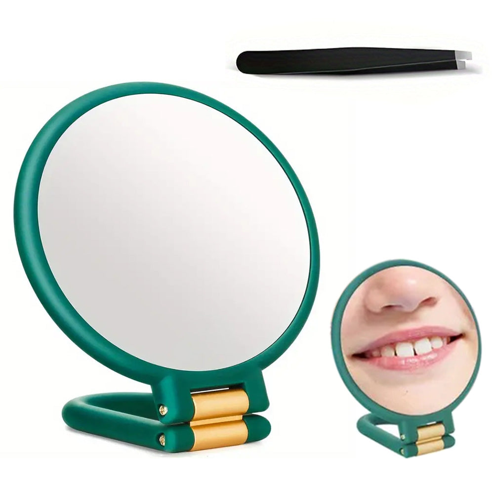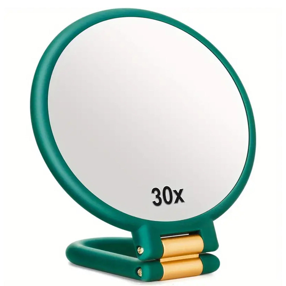 Foldable Double-sided Makeup Mirror 1X 30X Magnifying Mirror with Adjustable Stand Green