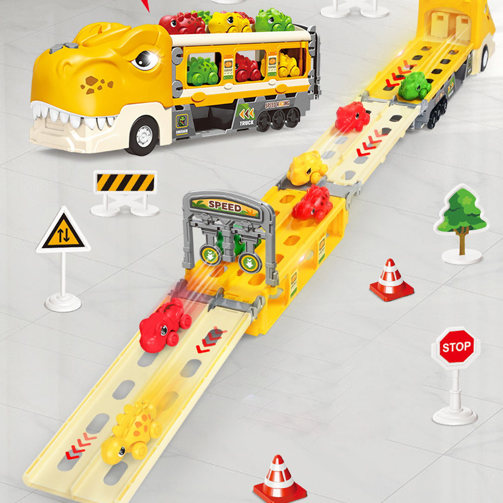 Foldable Ejection Race Track Dinosaur Toy Cars Set Kid Truck Car Toys Yellow