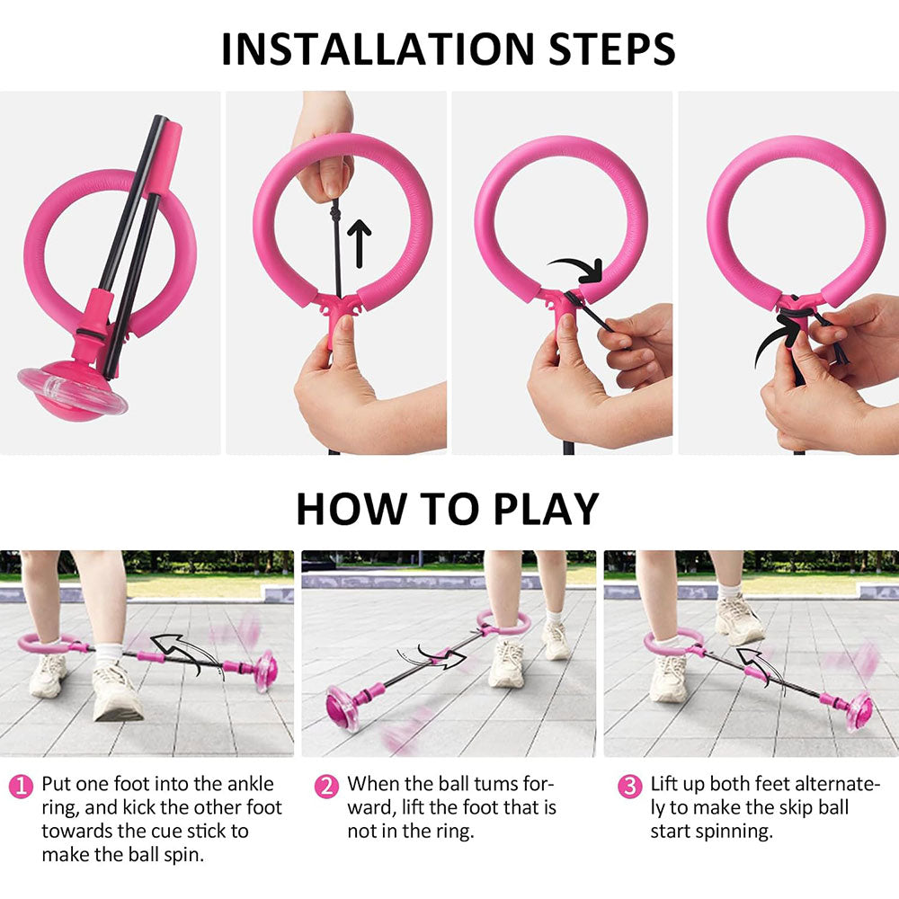 Foldable Skip Ball for Kids Colorful Flashing Wheel Skip Ball Game Fitness Toys Pink