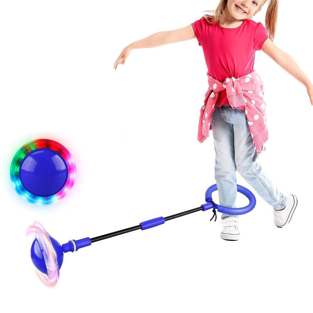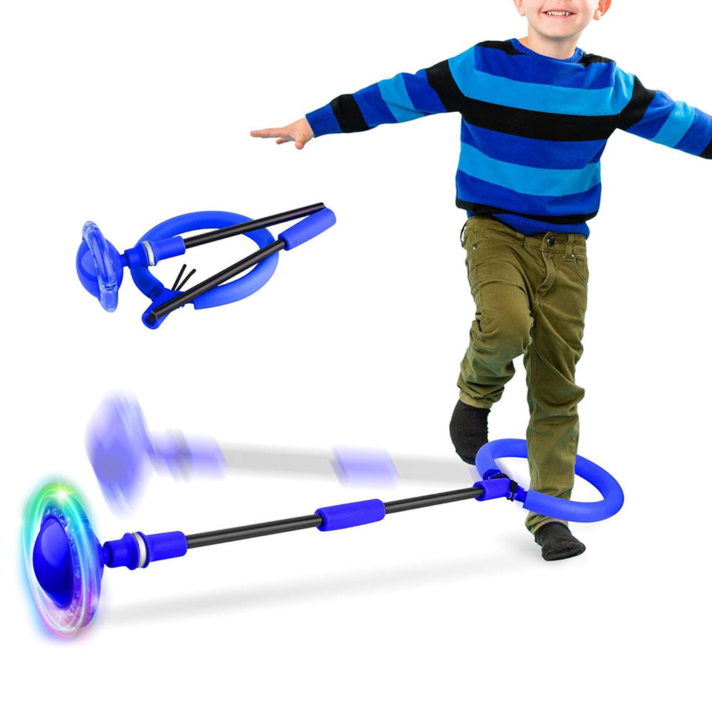 Foldable Skip Ball for Kids Colorful Flashing Wheel Skip Ball Game Fitness Toys Blue