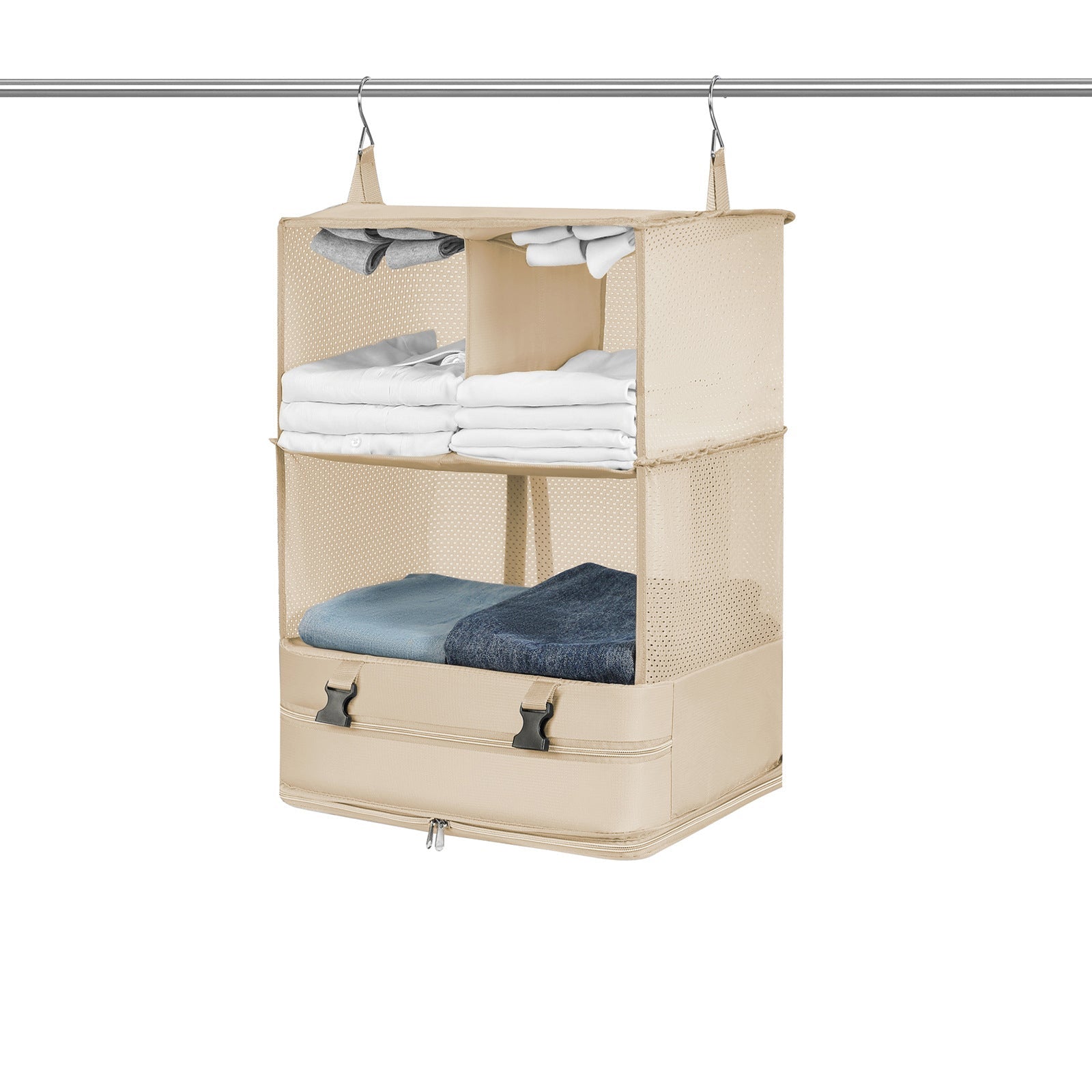 Foldable Storage Shelf Travel Packing Cube Portable Hanging Wardrobe Clothes Organizer Khaki