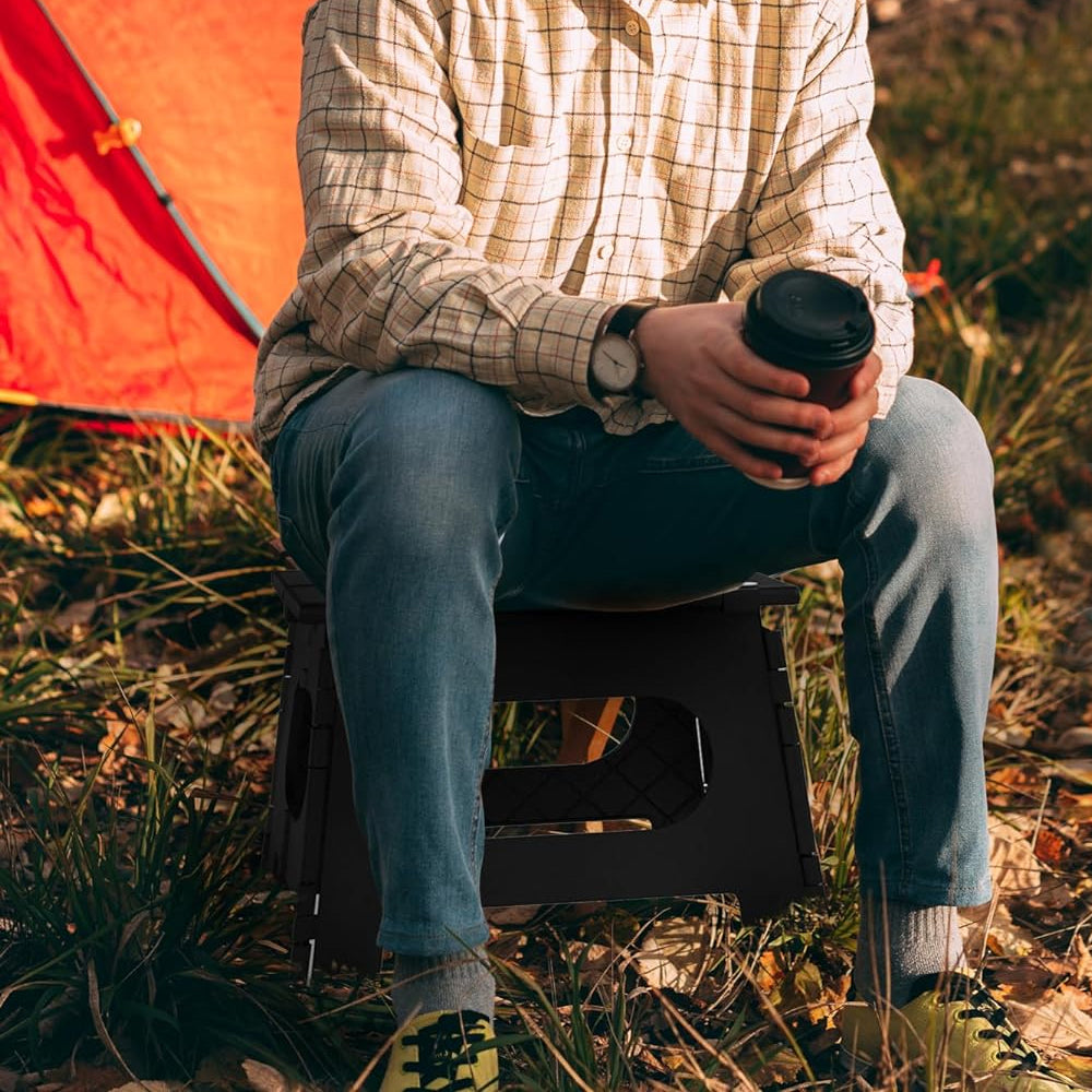 This folding footstool combines lightweight portability with high load-bearing capacity, making it an ideal outdoor or indoor sitting option.