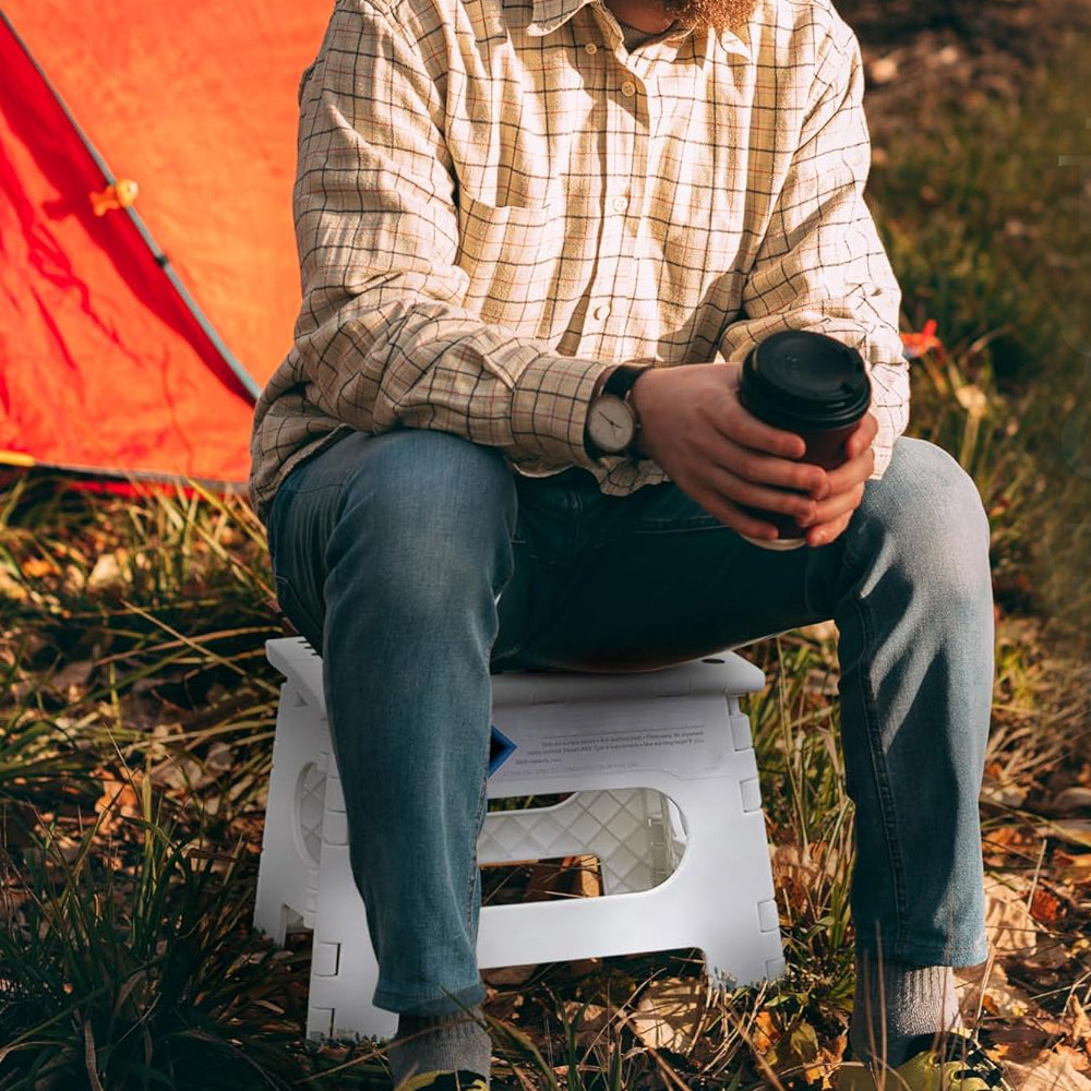 This folding footstool combines lightweight portability with high load-bearing capacity, making it an ideal outdoor or indoor sitting option.
