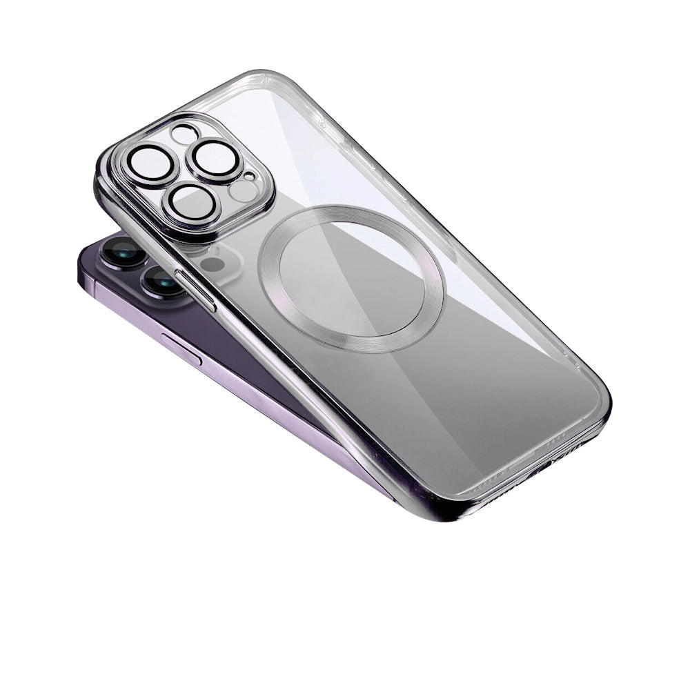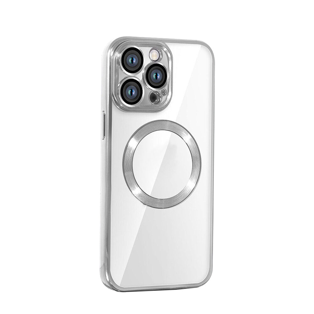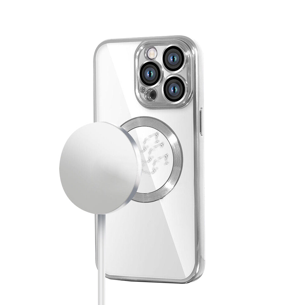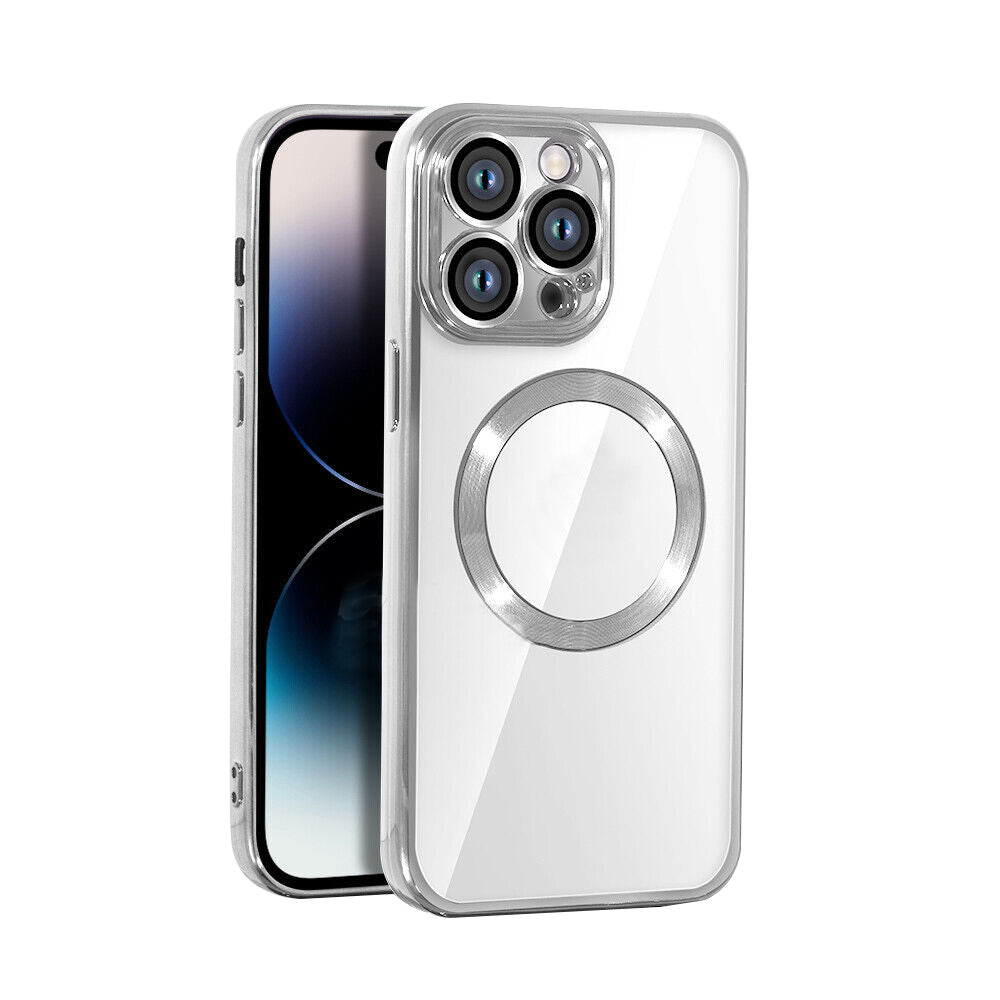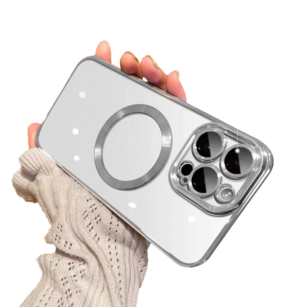 For iPhone 15 Series Magnetic Phone Cover Shockproof Plating Case Cover Silver