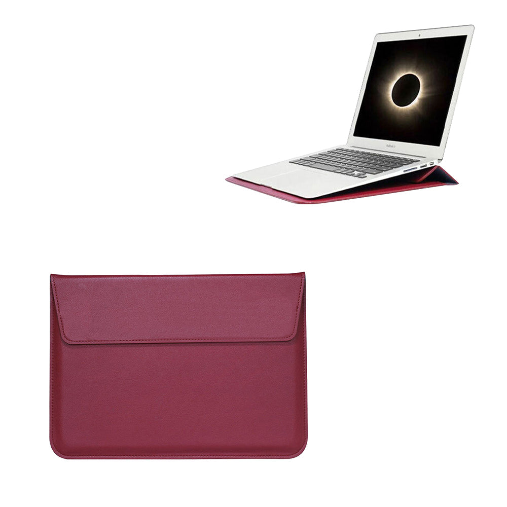 For Macbook PU Leather Macbook Case Wear Resistant Sleeve Cover with Stand Wine Red