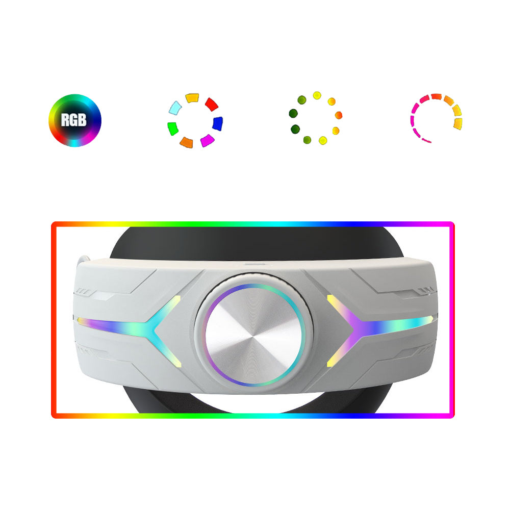 Immerse yourself in a visually stunning gaming environment with our head strap featuring vibrant RGB lighting effects on the head strap.