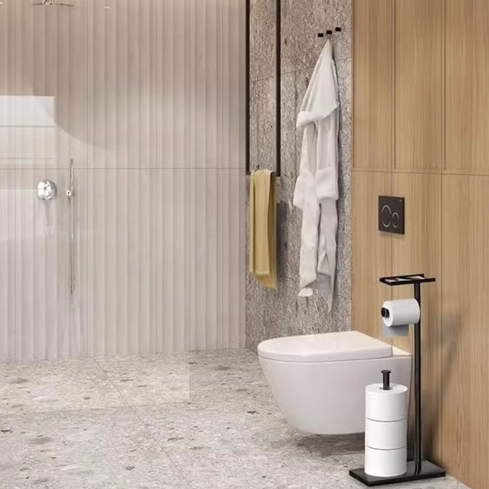 - Convenient Storage: Holds one active toilet paper roll and up to three extra rolls, perfect for small bathrooms or powder rooms.