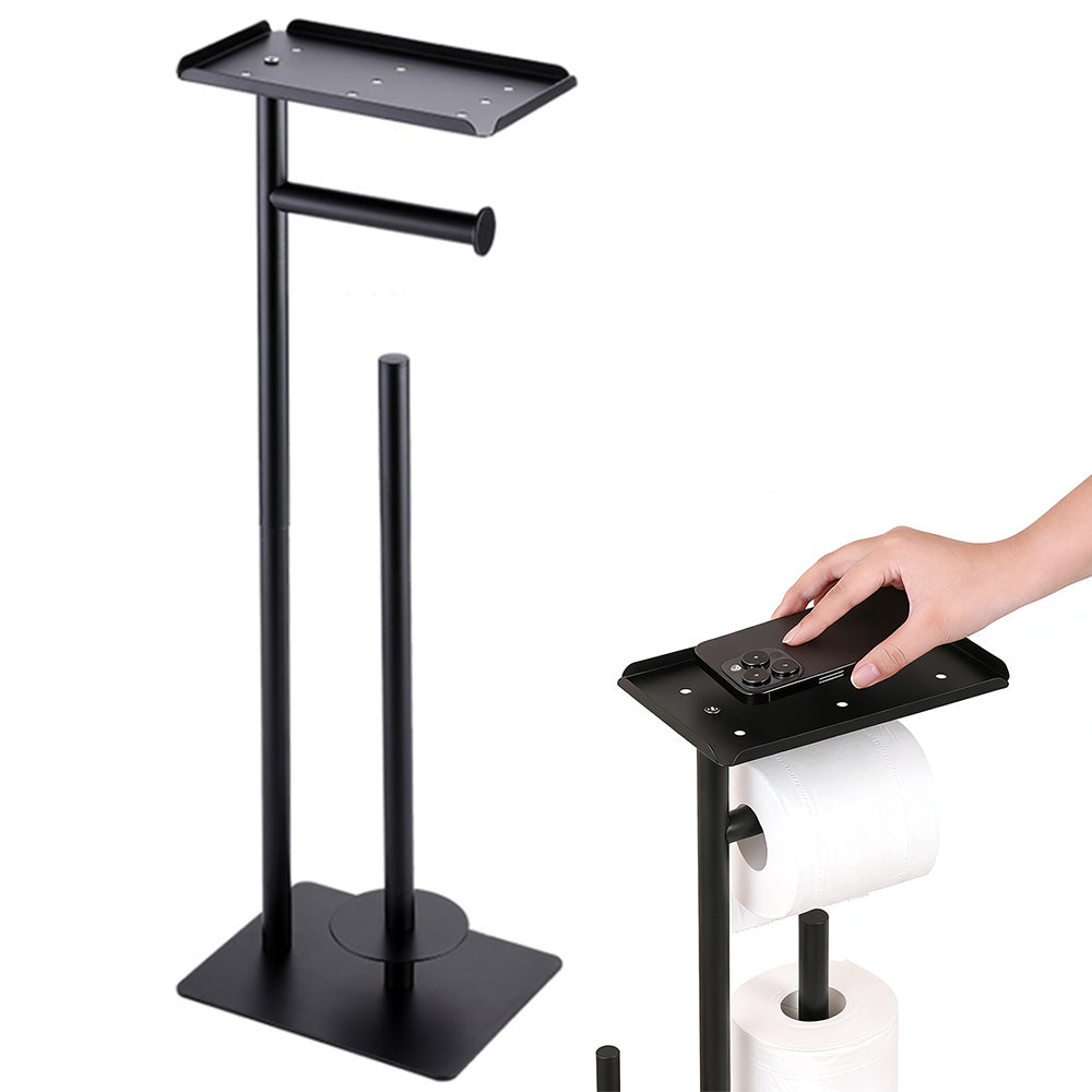 Free Standing Toilet Paper Holder with Shelf Bathroom Organizer Stand