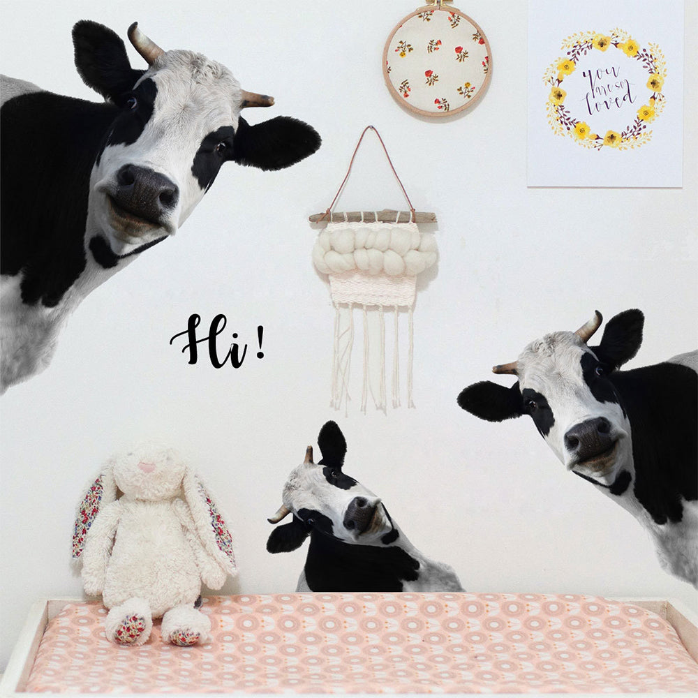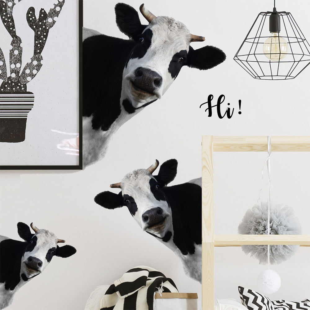 Funny Peeking Cow Wall Stickers Cute Animal Wall Decals
