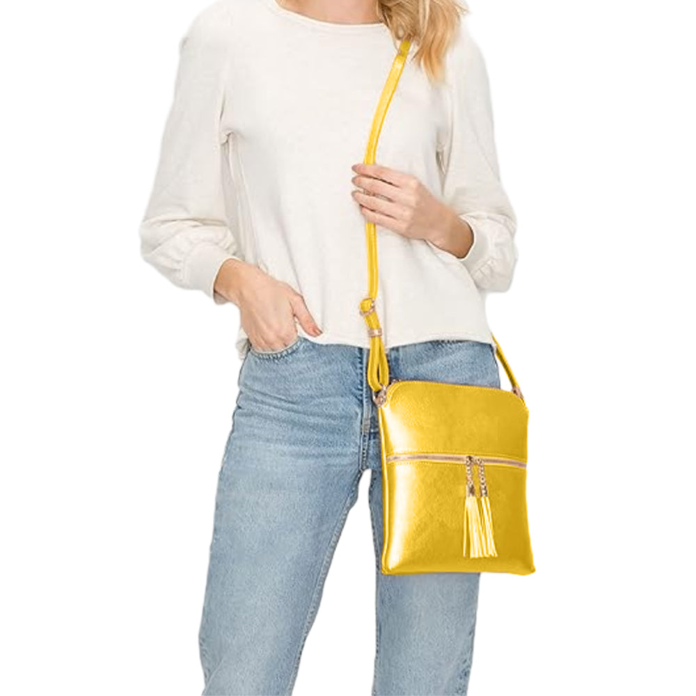 Girls Crossbody Bag Shoulder Bag with Tassel and Zipper Pocket Yellow