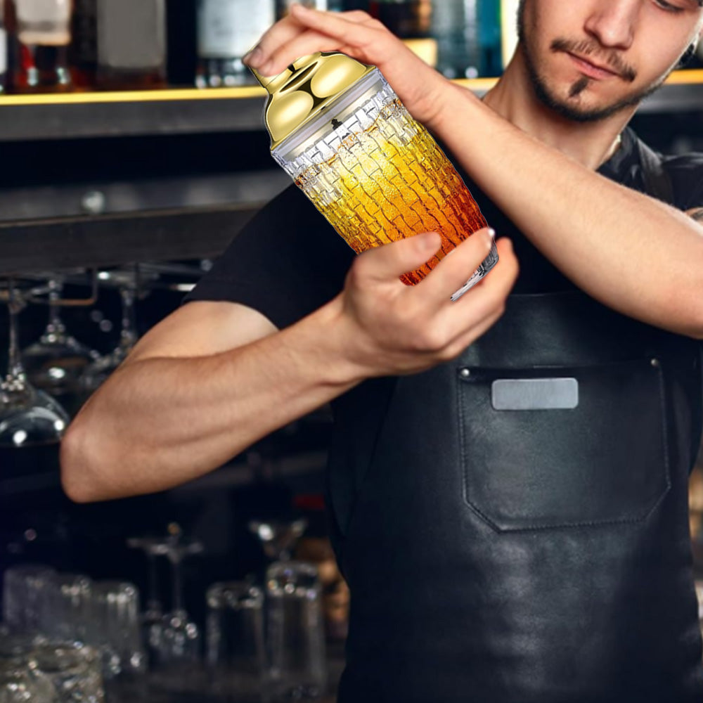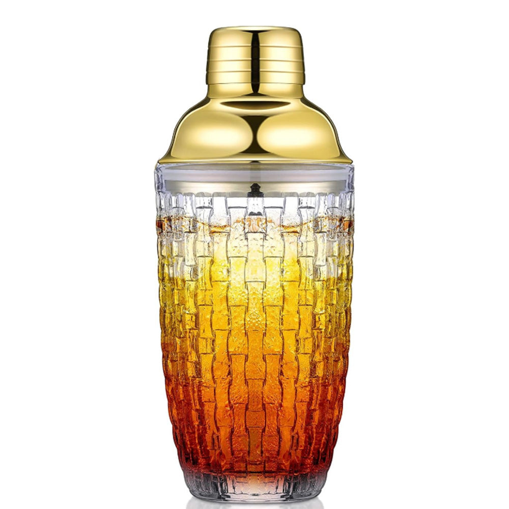 Glass Cocktail Shaker Leakproof Drinks Shaker with Steel Lid Ice Shaker for Home and Bar Use Golden