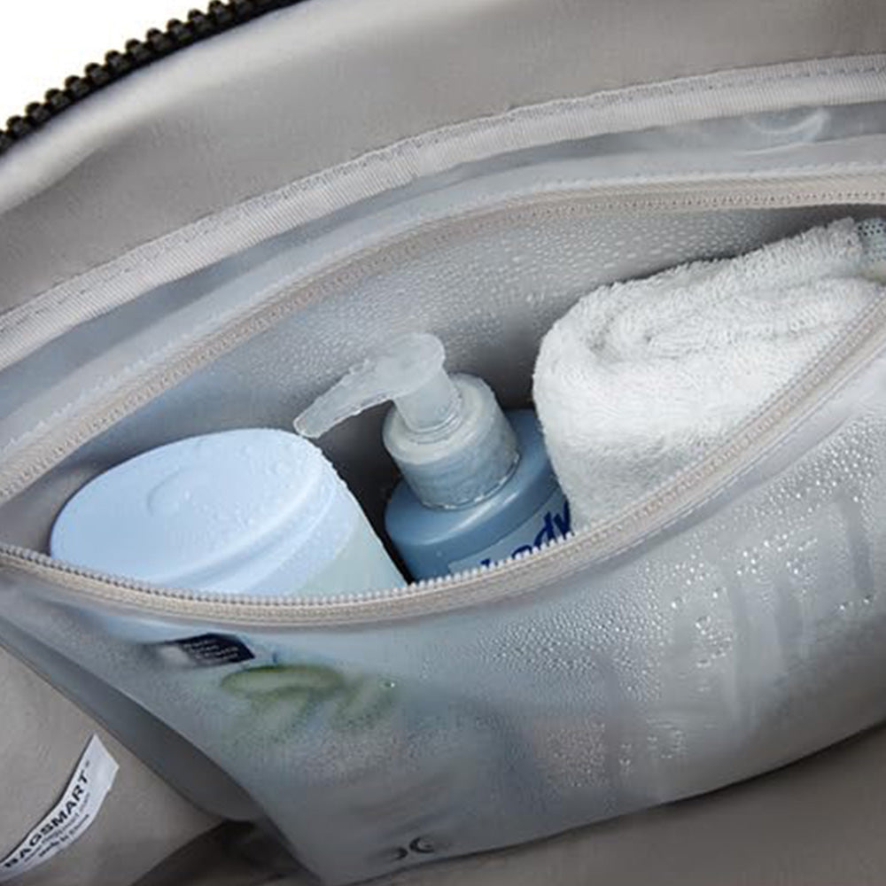 - Offers ample space and multiple compartments for efficient packing. A separate PVC pocket is included for storing wet items or towels, keeping your essentials dry and organized.
