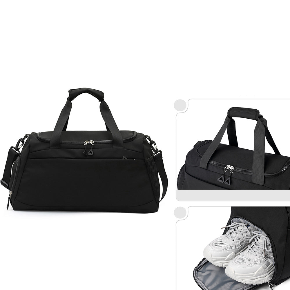 Gym Duffle Bag Travel Weekender Bag with Shoe Compartment Black