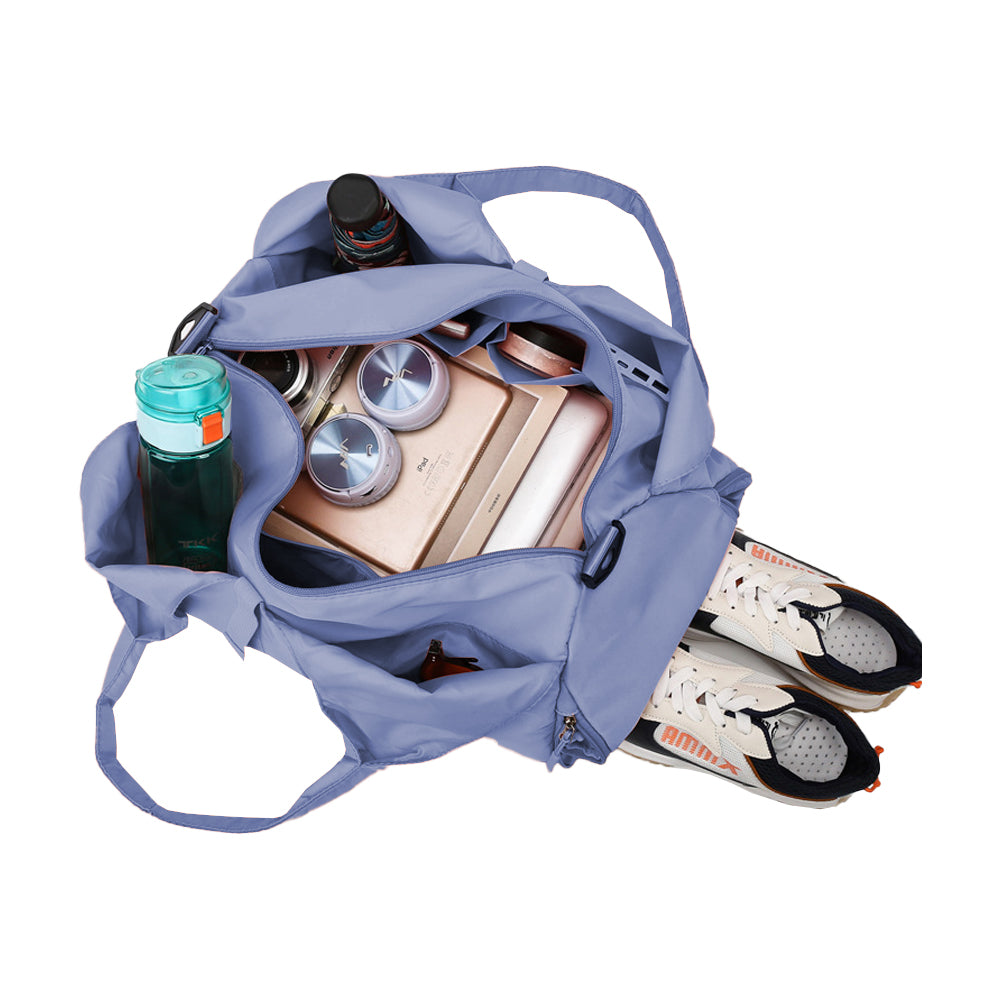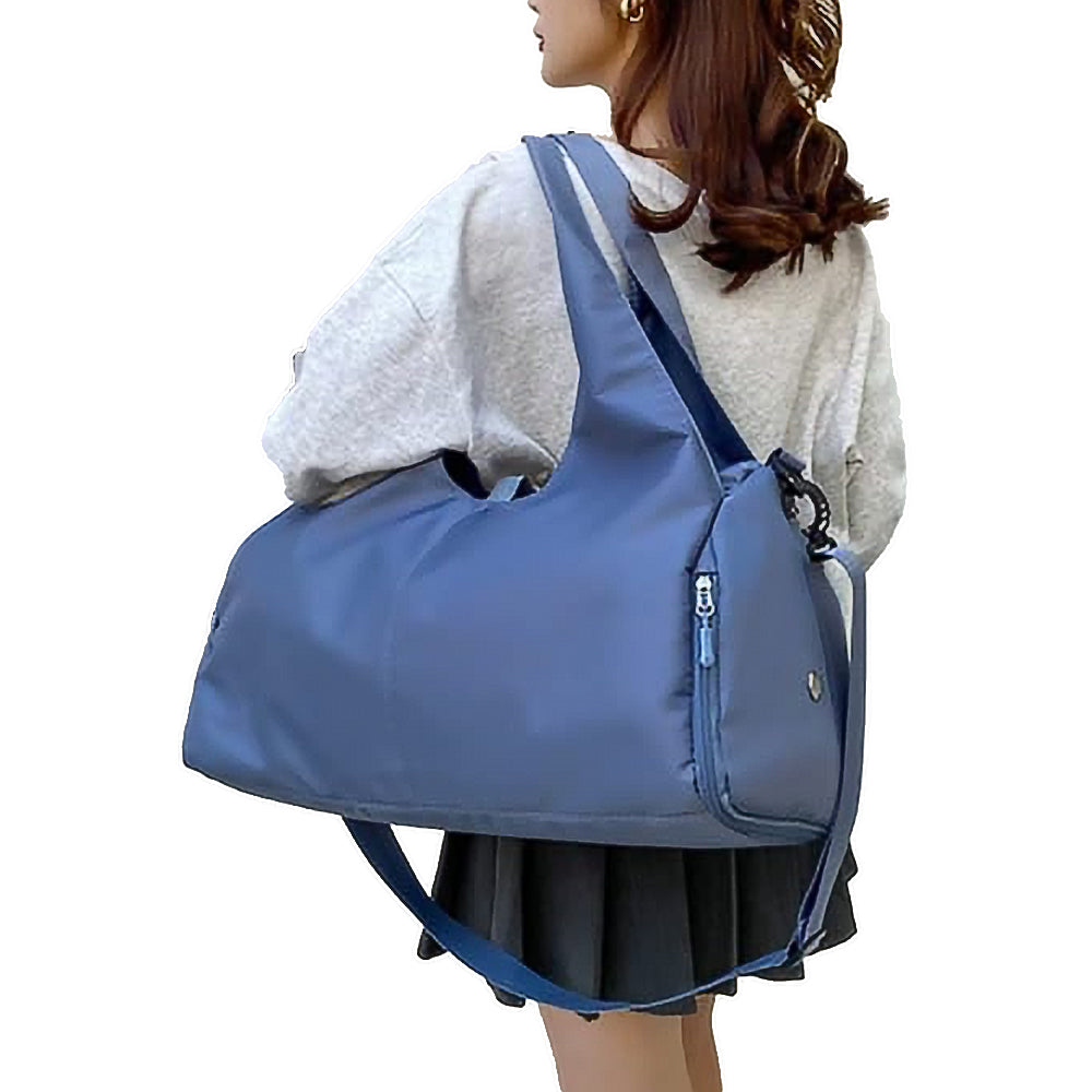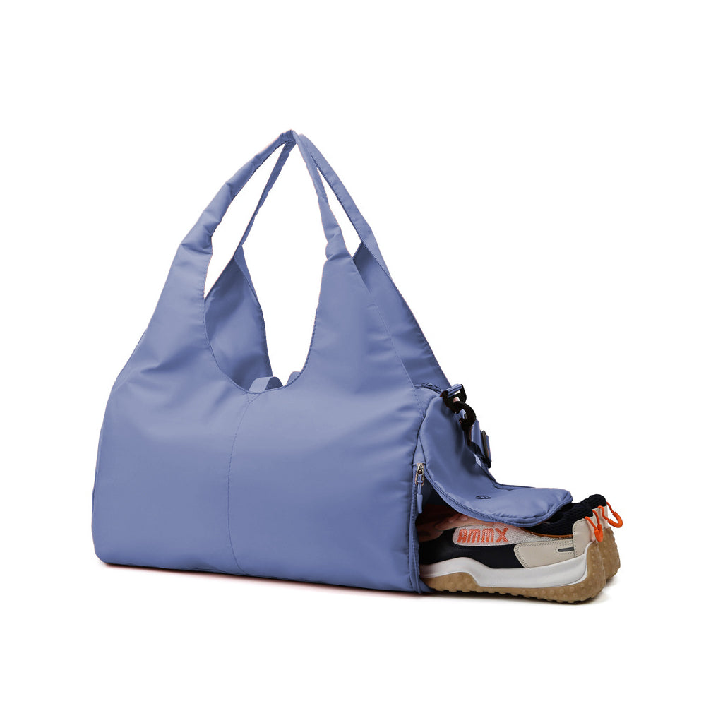 Gym Tote Bag with Shoe Compartment for Women Travel Duffel Bag Yoga Mat Holder Blue
