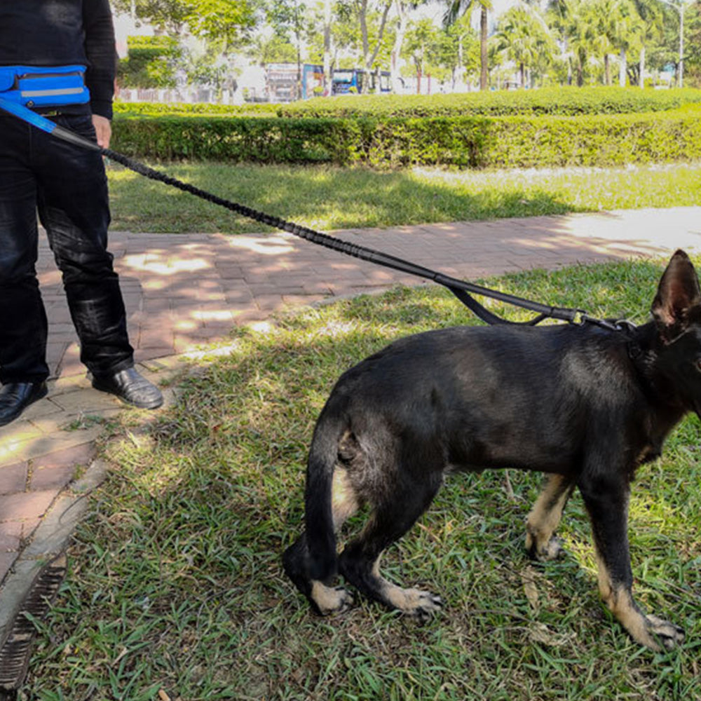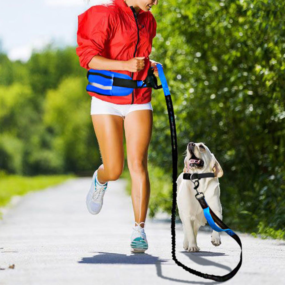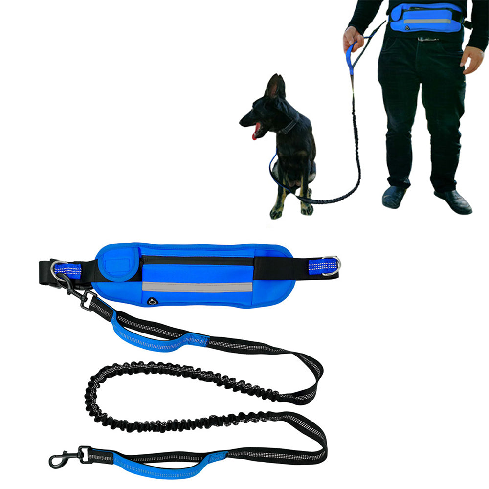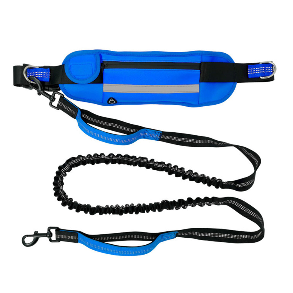Hands Free Dog Walking Waist Bag with Adjustable Dog Leash Waist Belt Pouch Dog Running Rope Blue