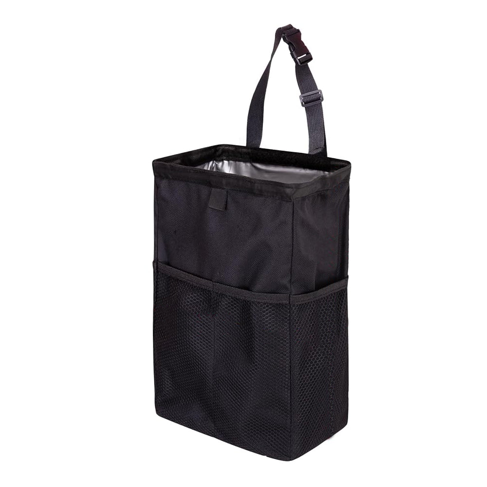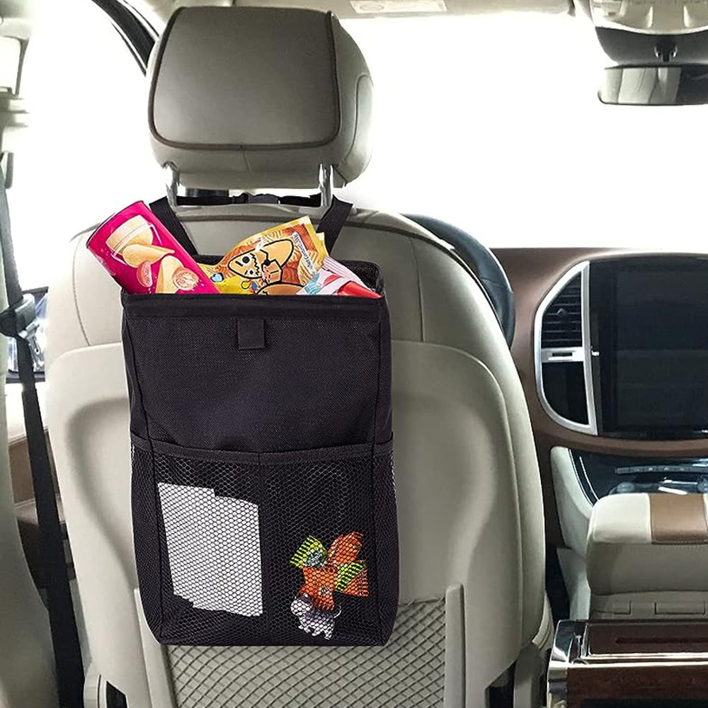 Hanging Car Trash Can with Storage Pockets Leakproof Universal Auto Garbage Bag Foldable Trash Bin Black