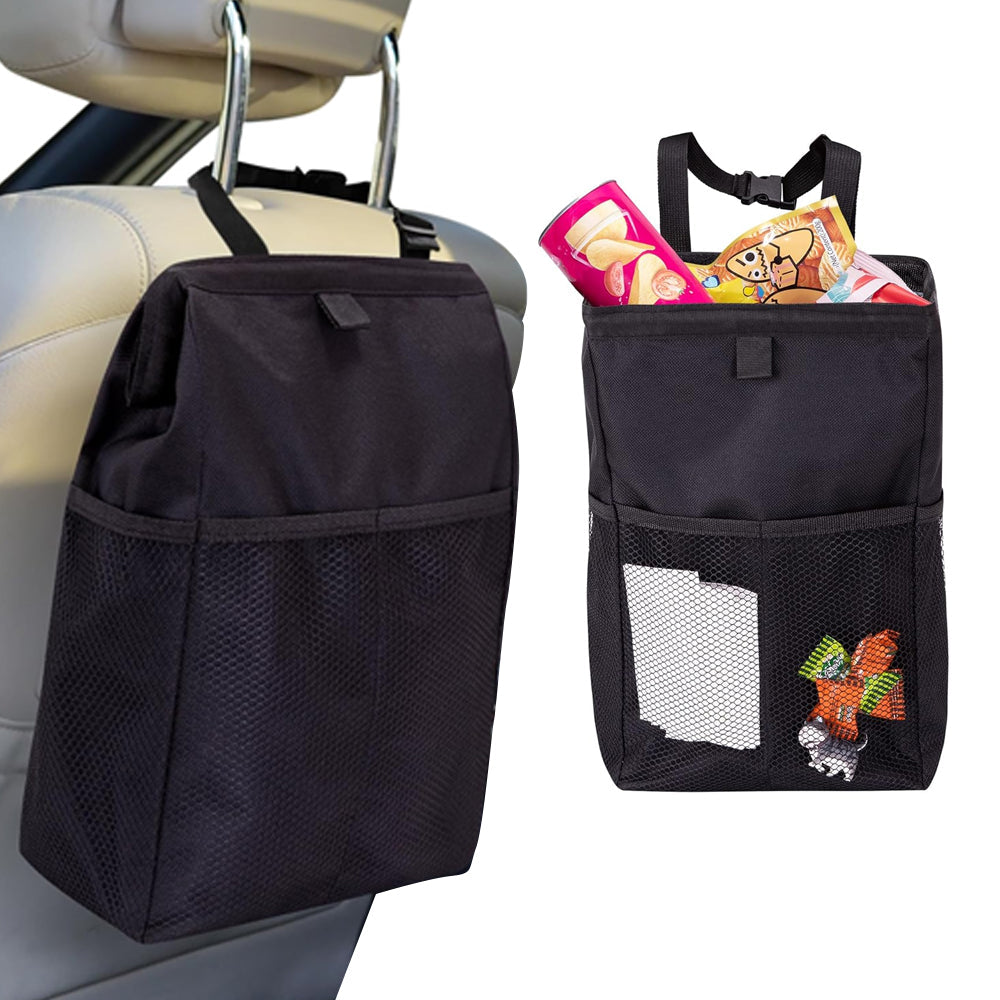 - Car garbage cans are easy to install and remove as needed, hanging comes with adjustable strap that can be secured any height to a headrest, console, glove box, armrest box, door that in reach of the driver.