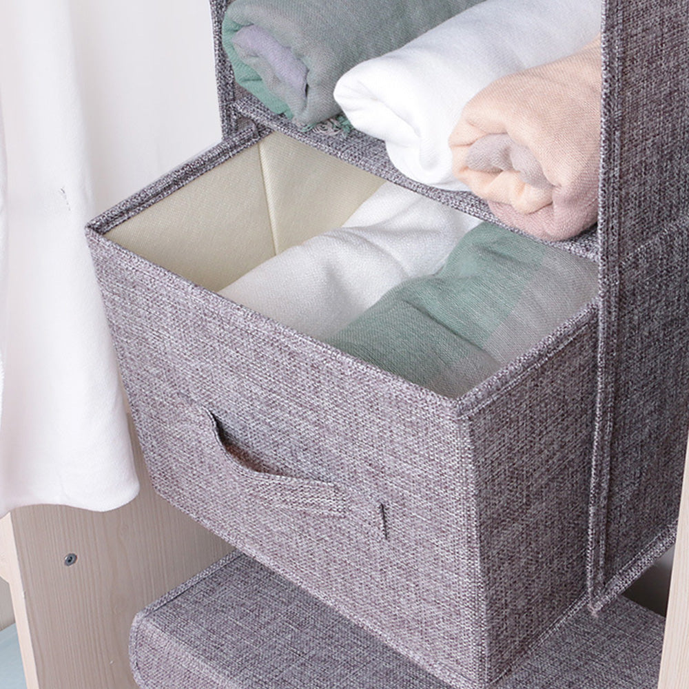 - A sturdy hanging closet organizer made of cotton-linen blend fabric with reinforced top and bottom boards, offering multi-tier storage for shirts, dresses, and jackets while saving floor space in small wardrobes or tight spaces.