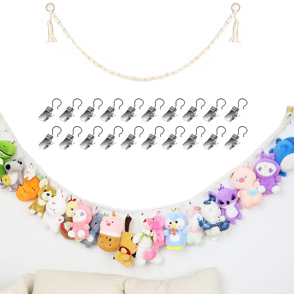 Hanging Storage Chain with 20 Metal Clips for Stuffed Toy Boho Plush Animal Hammock Corner for Room Decor