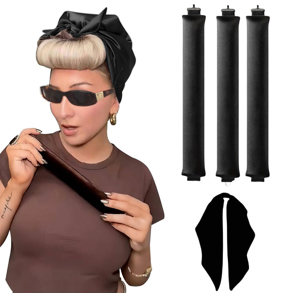 Heatless Overnight Curlers Set No Heat Curling Headband with Rods for Long Hair Black