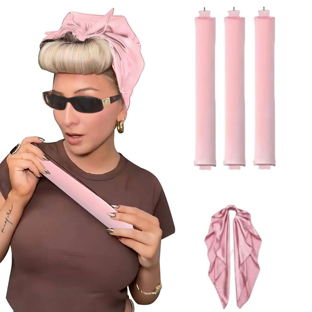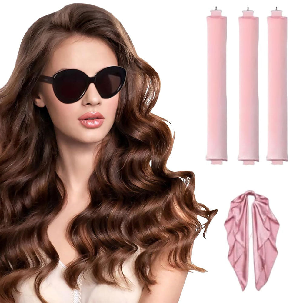 Heatless Overnight Curlers Set No Heat Curling Headband with Rods for Long Hair Pink