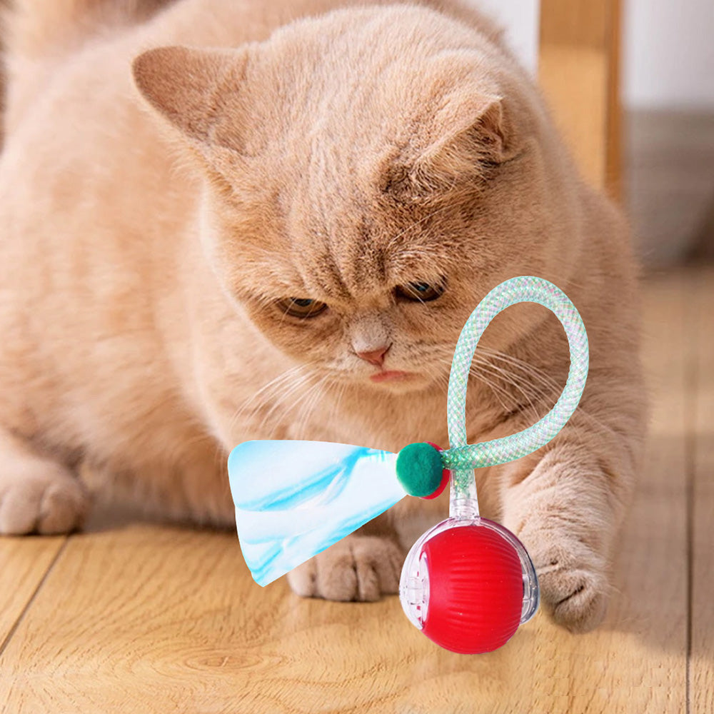 Interactive Cat Toy Moving Cat Ball with Dragonfly Tail Indoor Auto-Turn Cat Toy Red