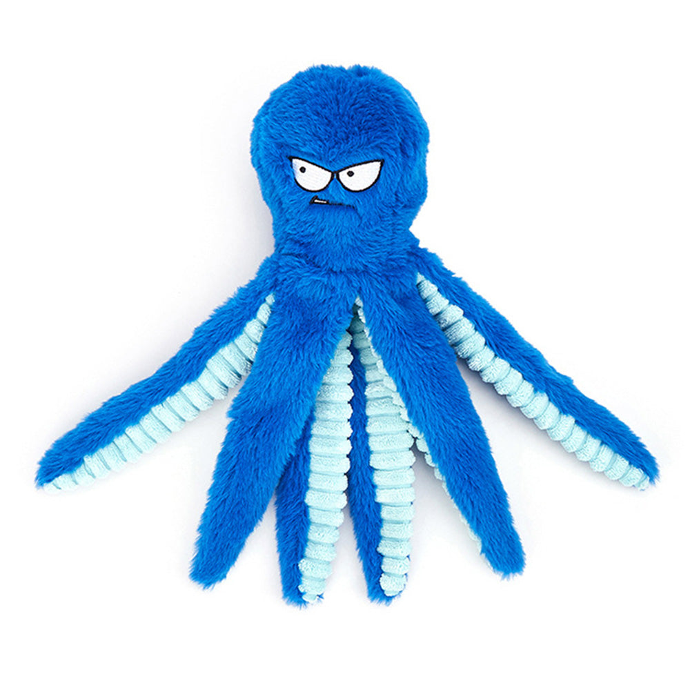 Interactive Plush Dog Toy with Squeaker and Crinkle Tentacles for Medium & Large Dogs Blue