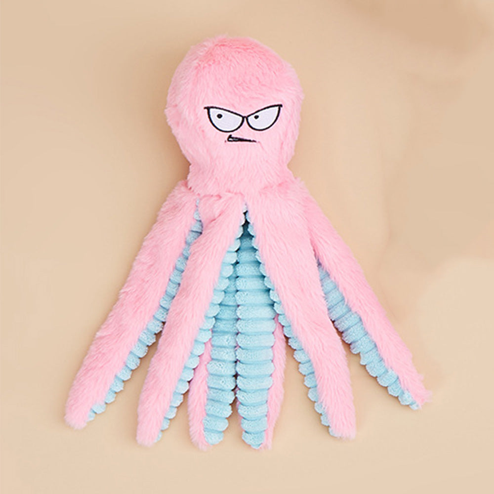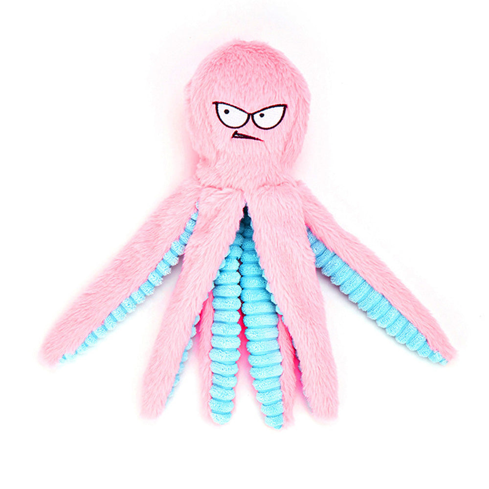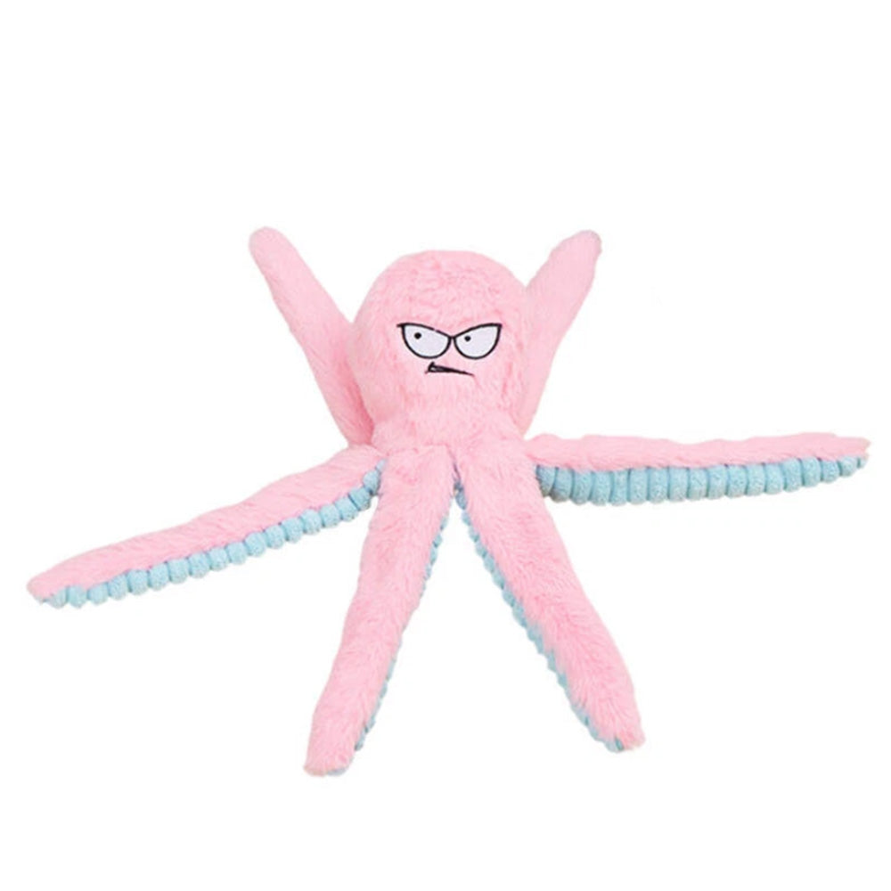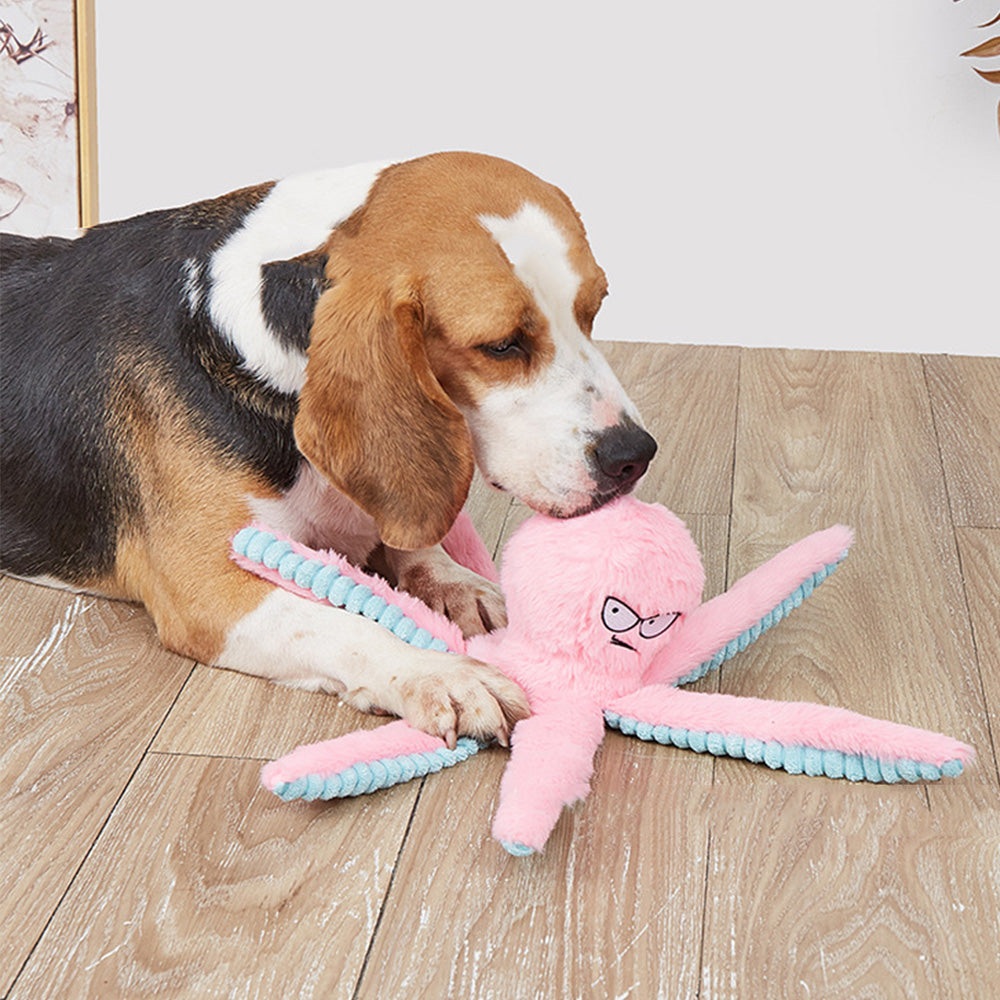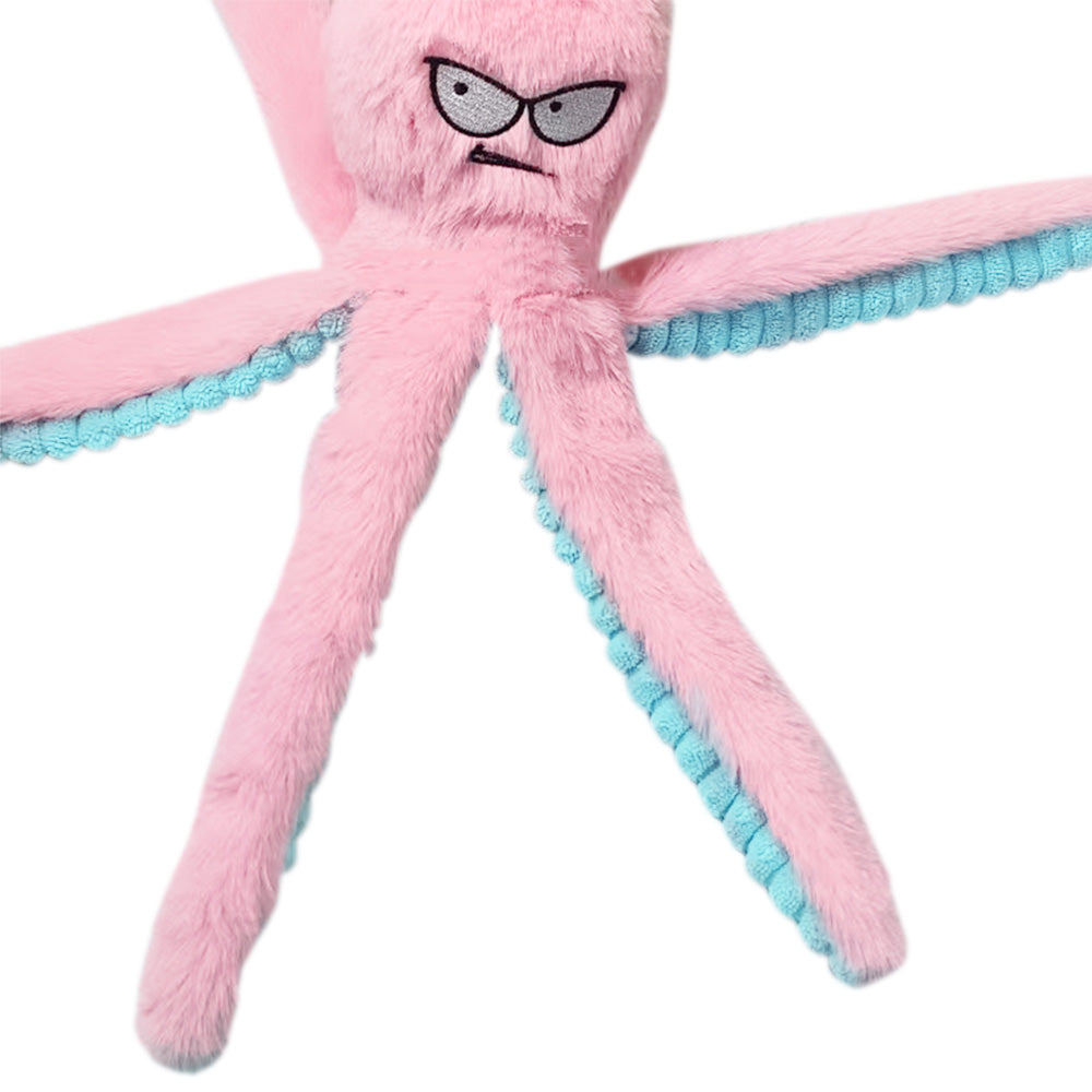 Interactive Plush Dog Toy with Squeaker and Crinkle Tentacles for Medium & Large Dogs Pink