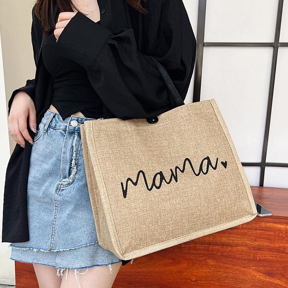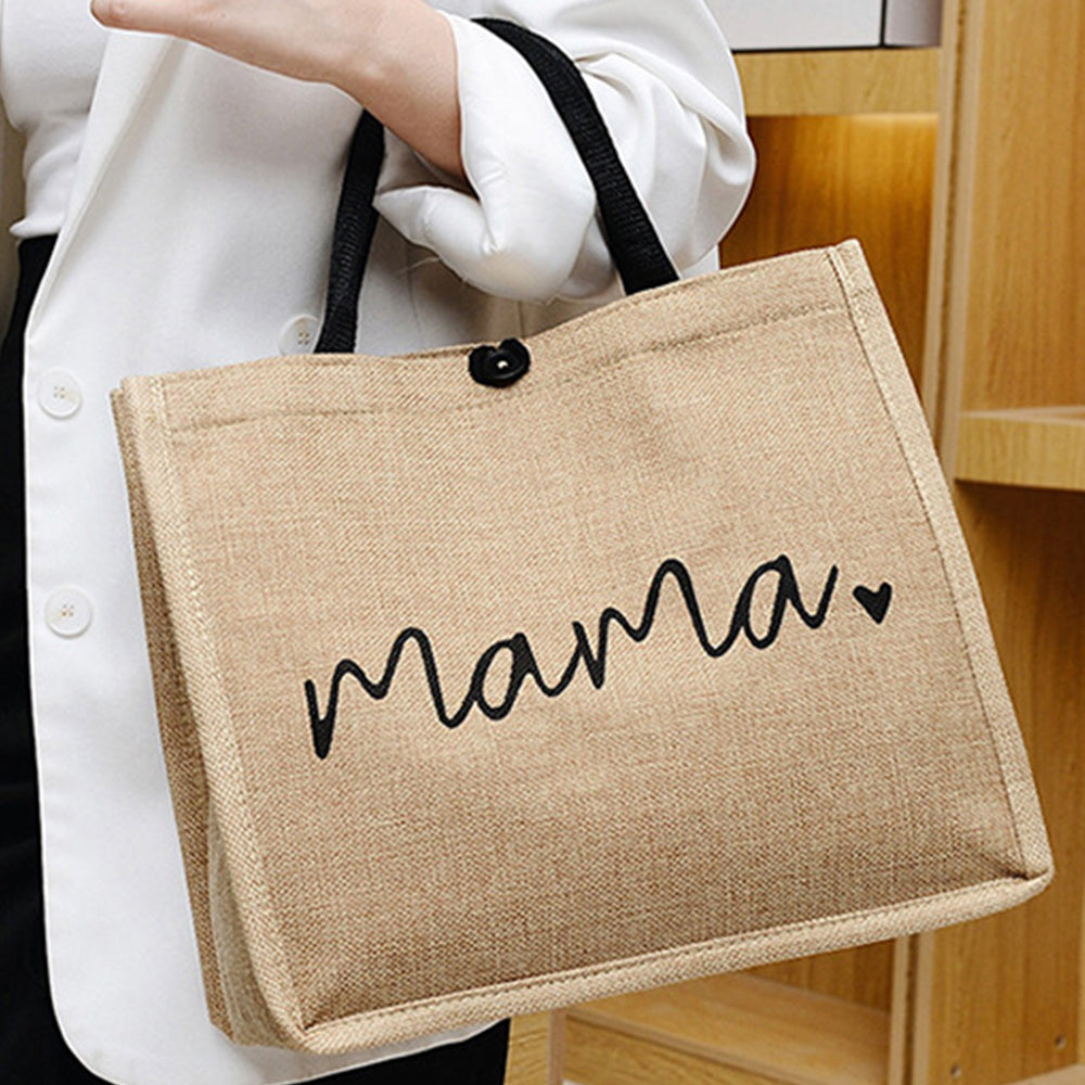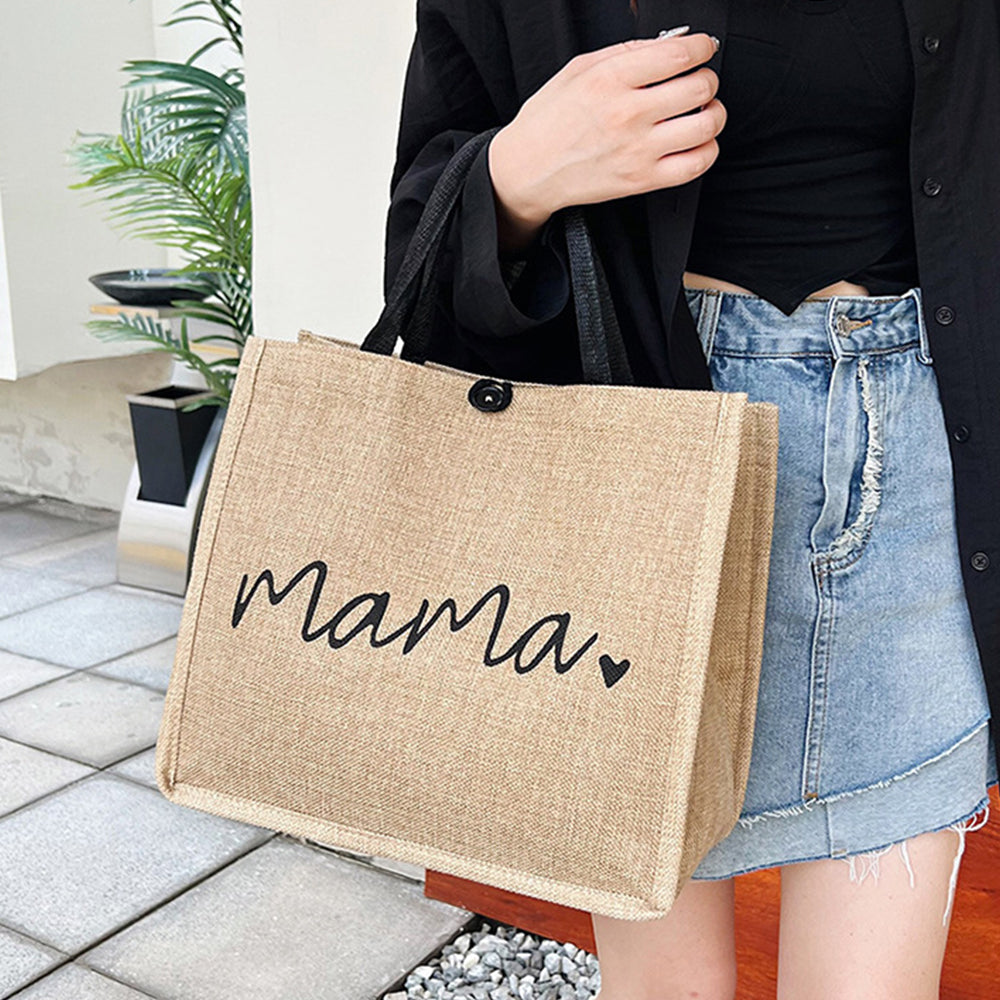Jute Tote Bag with Handle Reusable Handbags Burlap Tote Mama Bag Style 1